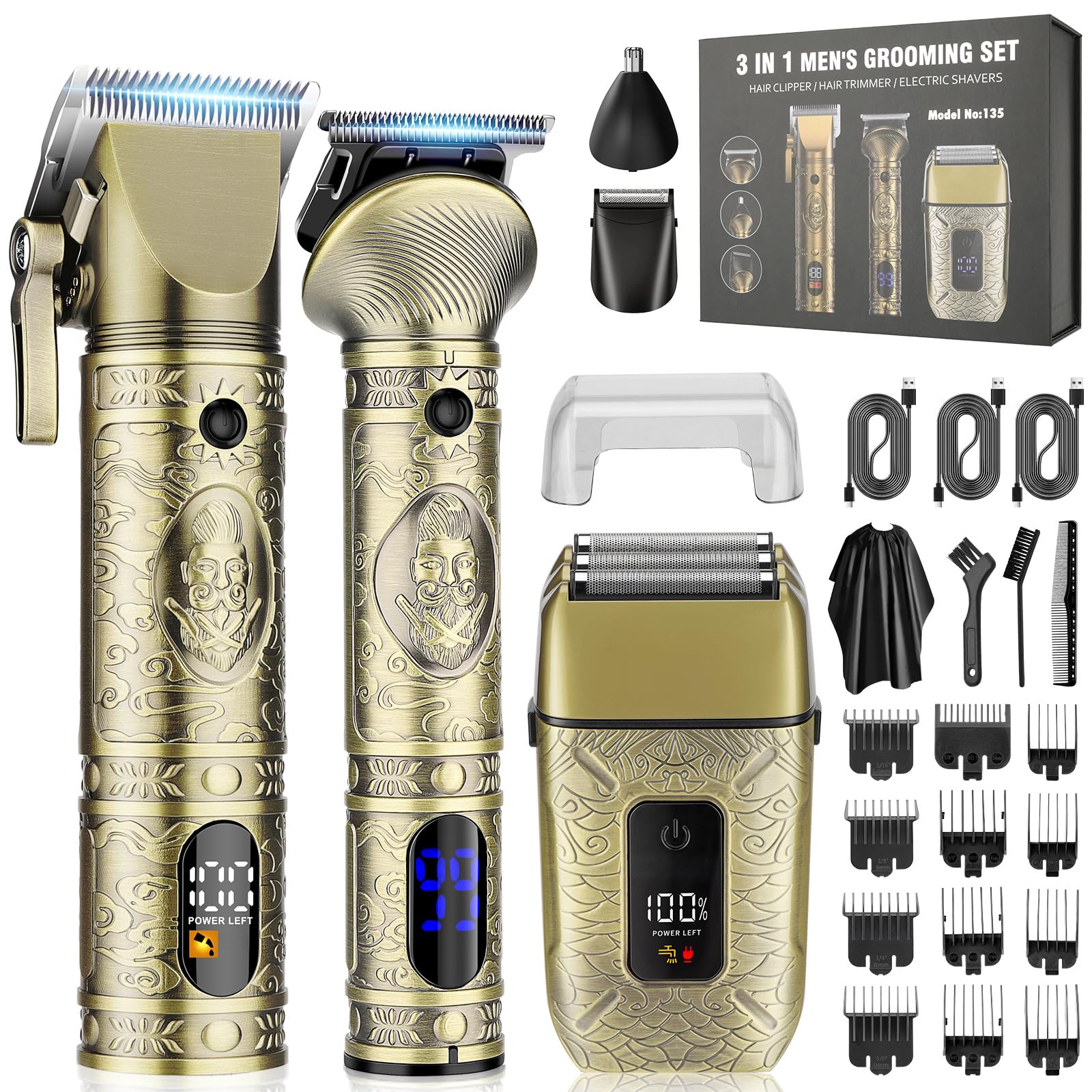 Cortadora de pelo profesional para hombres, recortadora de hoja en T 3 en 1, afeitadoras eléctricas de pelo de nariz, cortadoras d