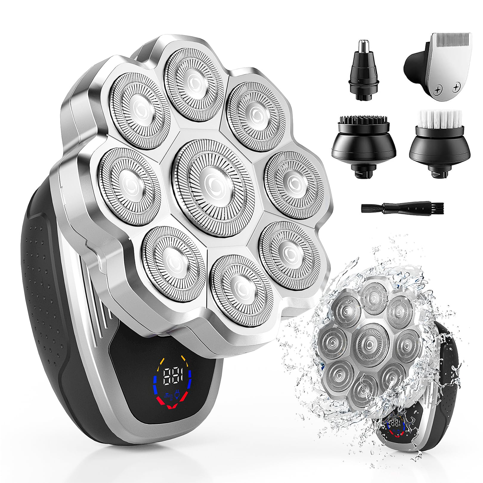 DSP® Afeitadora calva para hombres, afeitadora de peluquería 2 en 1 con recortadora de precisión, maquinilla de afeitar eléctrica