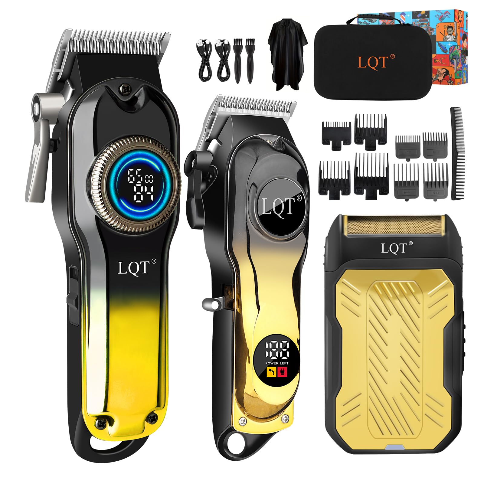 LQT® Cortapelos profesionales para hombres, juego de cortapelos inalámbrico para cabello, barba y aseo corporal, con cuchillas de