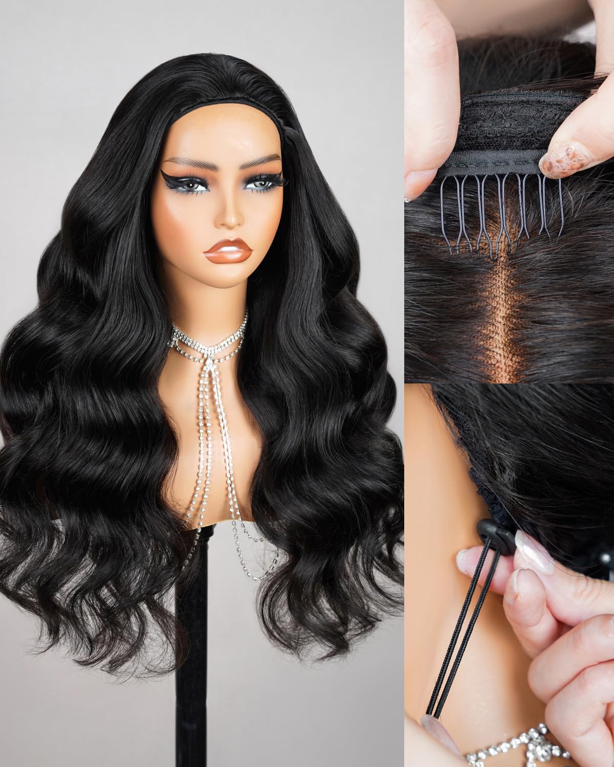 Peluca de cabello humano ondulado con diadema, media peluca, hecha a máquina, sin encaje, sin pegamento, extensión de cola de caba