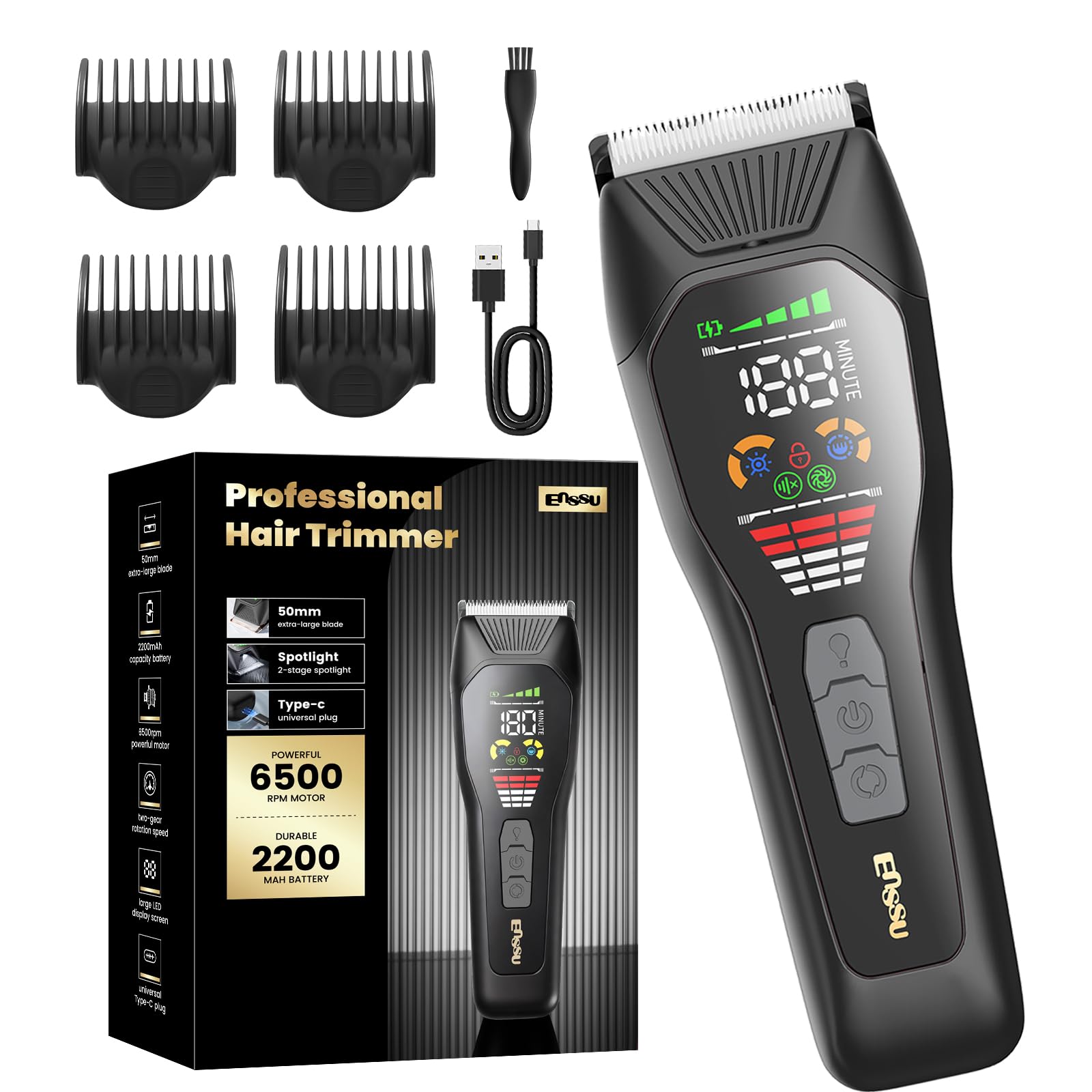 ENSSU Professinoal – Cortapelos recargable tipo C para hombres, cortadora de pelo inalámbrica y kit de aseo para hombres, pinzas e