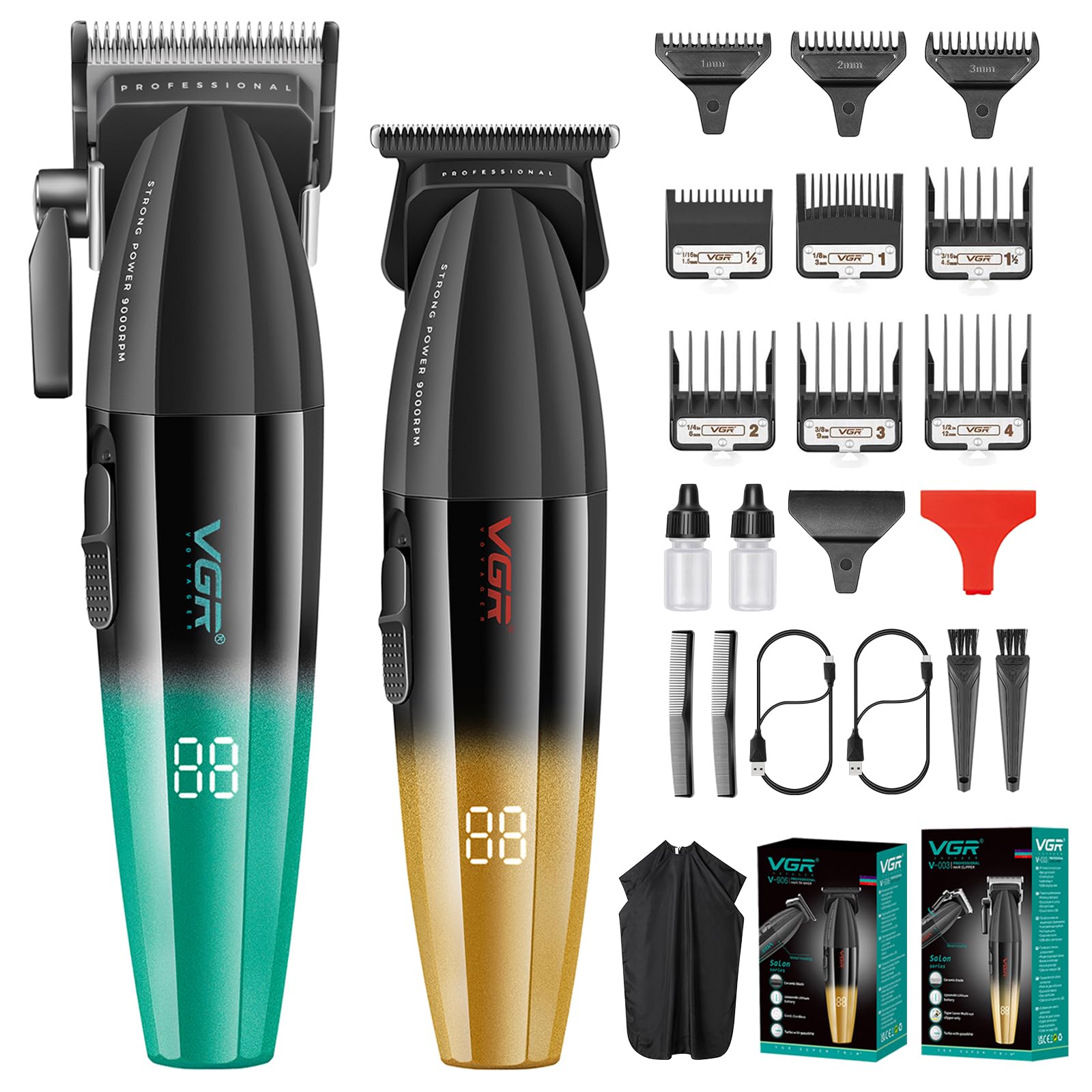 VGR Juego de cortapelos y recortadora profesional para hombres, cortadora de pelo y cortadora de cuchilla en T sin espacio cero, k
