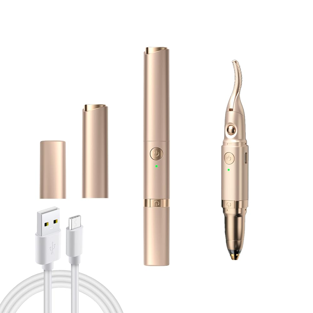 Rizador de pestañas eléctrico 2 en 1 con recortador de cejas, 2 ajustes de temperatura, recargable por USB, calentamiento rápido d