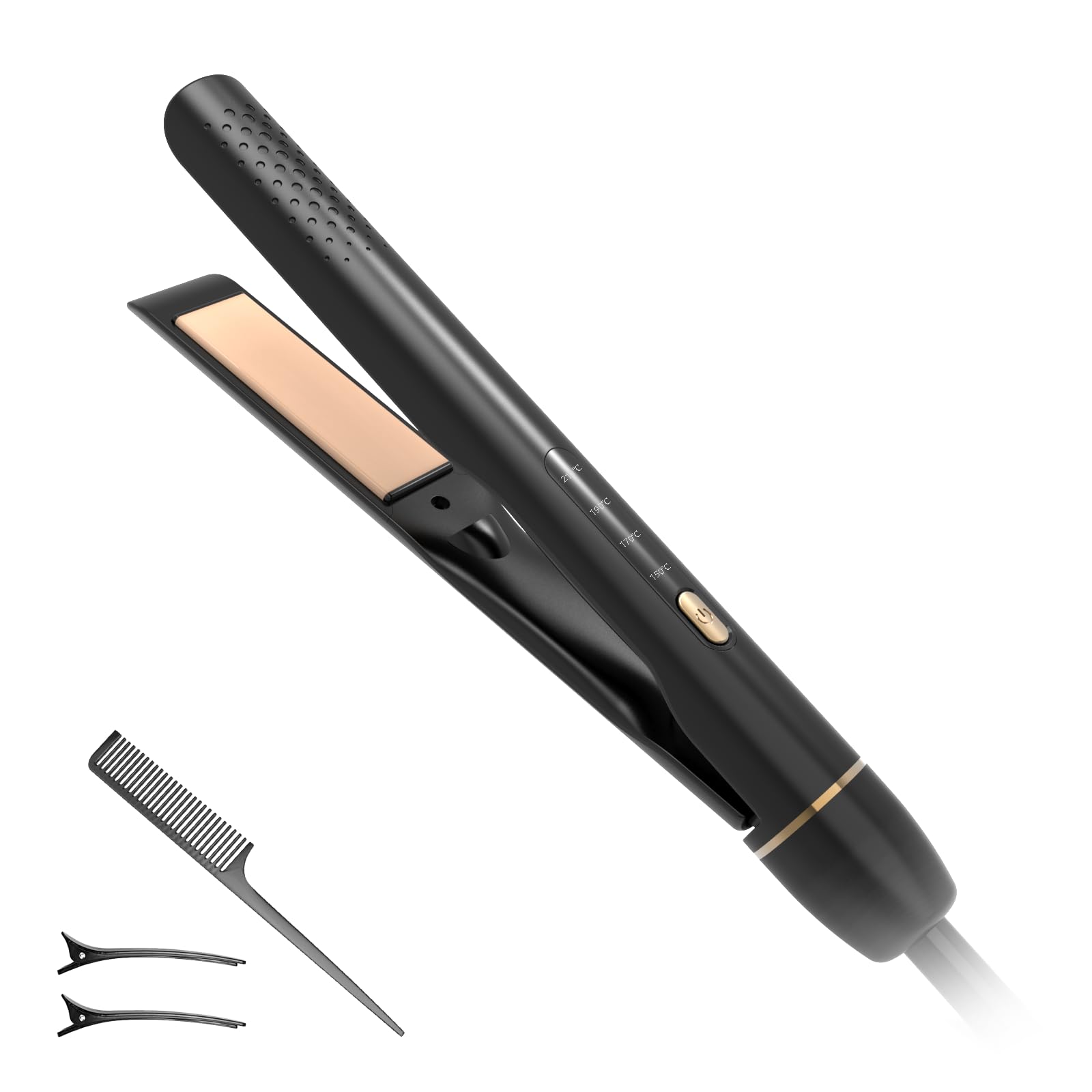 Mini plancha plana de cerámica de 0.7 pulgadas, alisadora de pelo para cabello corto, rizos, flequillo, temperatura ajustable, dob