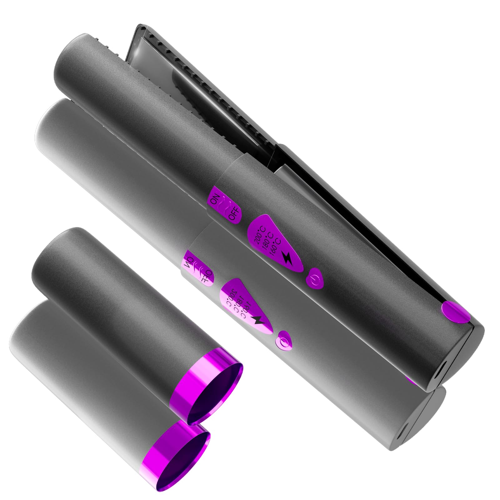 Plancha de pelo inalámbrica, plancha plana portátil y rizador 2 en 1, calor rápido, recargable tipo C, para viajes/hogar (morado)