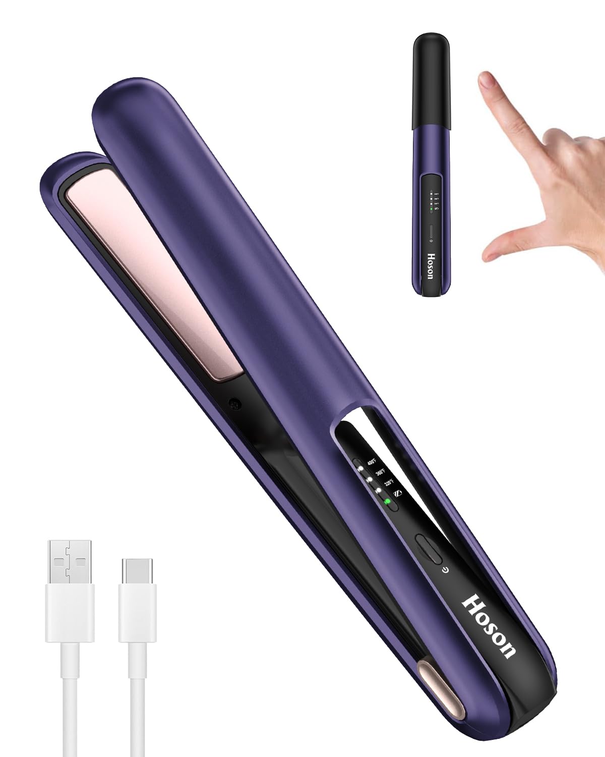 Hoson Plancha de pelo inalámbrica, mini plancha plana portátil de viaje para flequillo, pelo corto, rizador inalámbrico recargable
