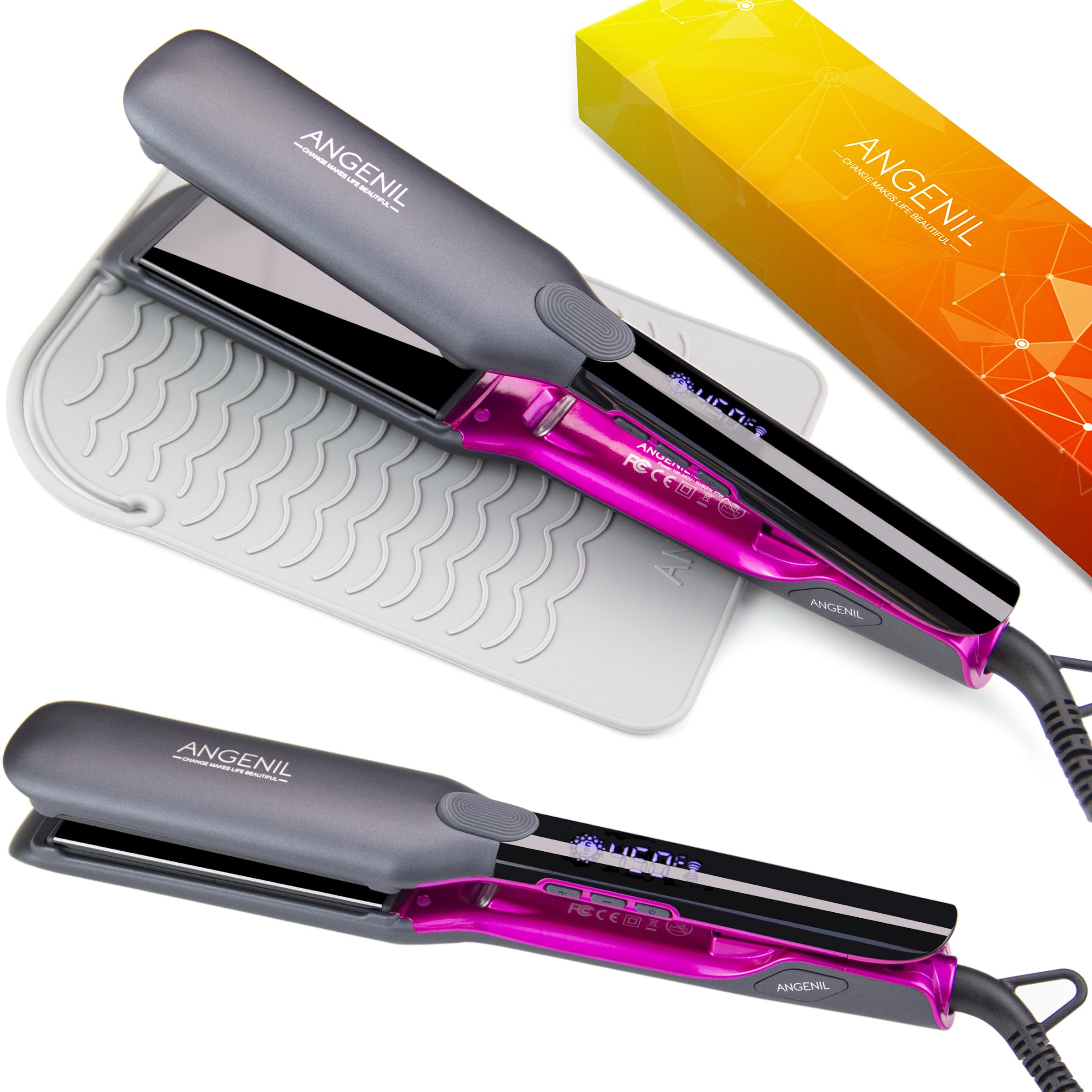ANGENIL Plancha alisadora de cabello, plancha plana de 1.75 pulgadas de ancho, alisador y rizador 2 en 1, alisador profesional par