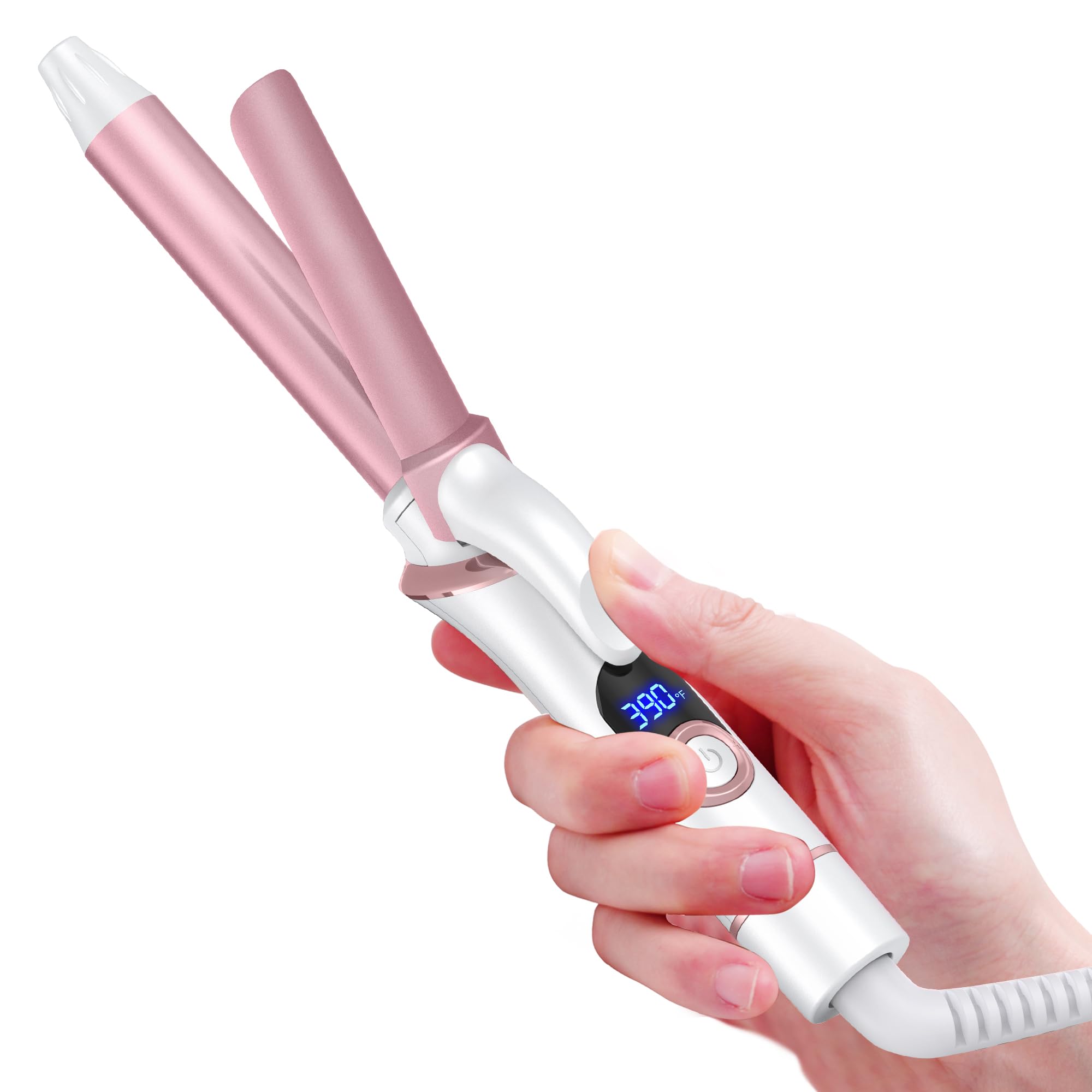 Rizador de doble voltaje: 110 V-240 V 1 1/2 pulgadas de barril ancho de cerámica 2 en 1 rizador para cabello largo de mentón – Via