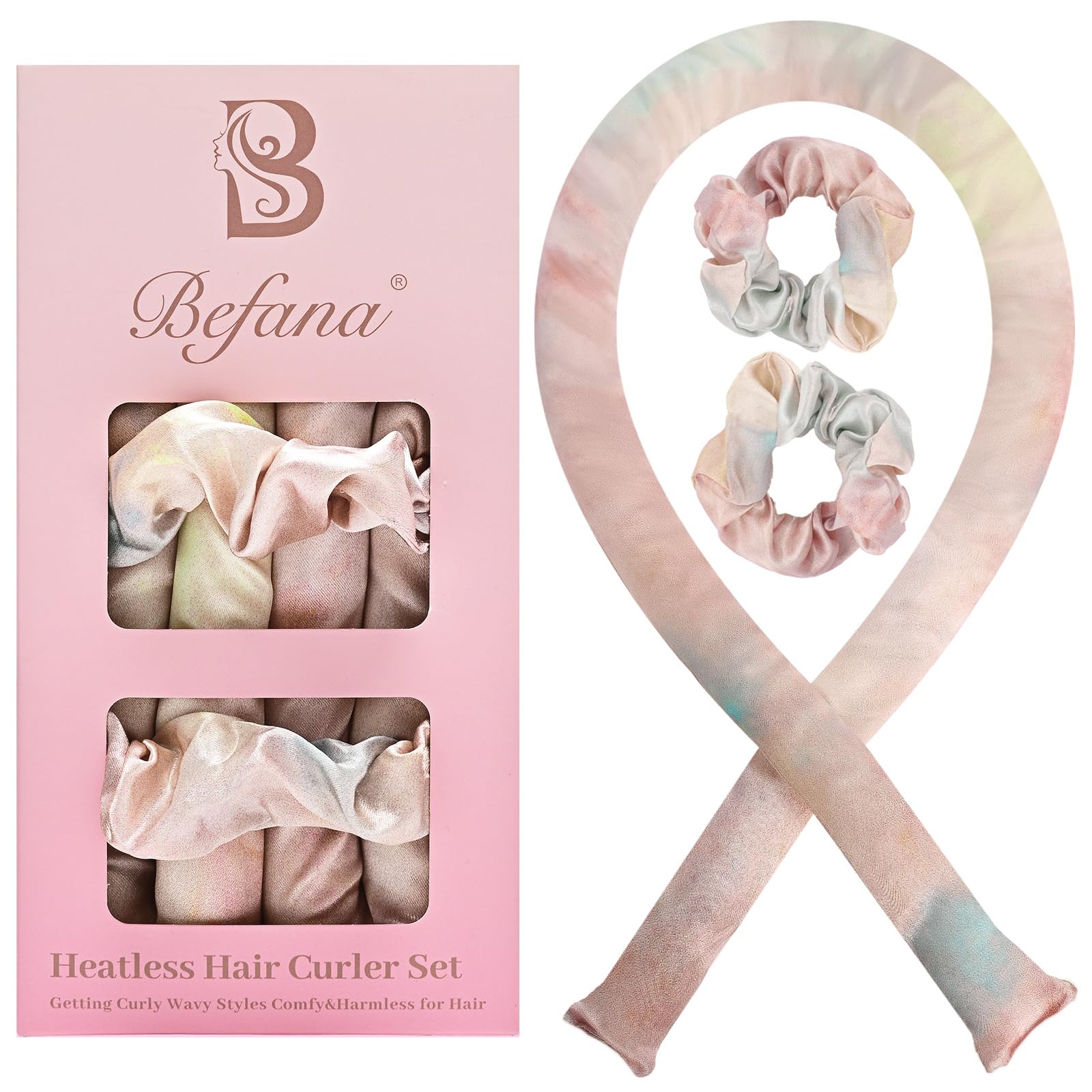 Rizador de cabello satinado sin calor, rizos sin calor durante la noche, rodillos para cabello largo con 2 bandas elásticas para e