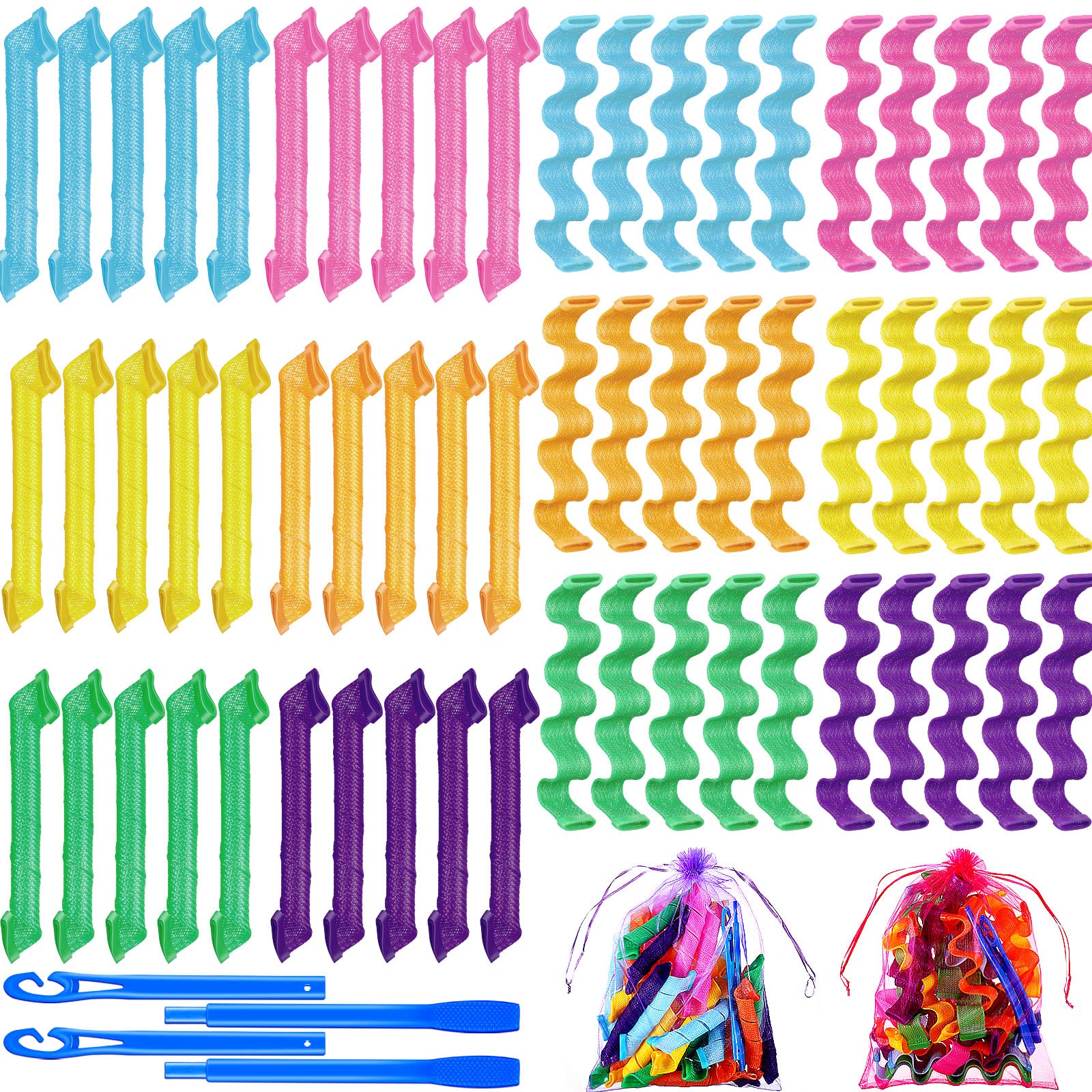 Yilloog Kit de peinado de 60 rulos en espiral: 2 estilos de ondas sin calor, rizadores de silicona con ganchos y bolsas para cabel