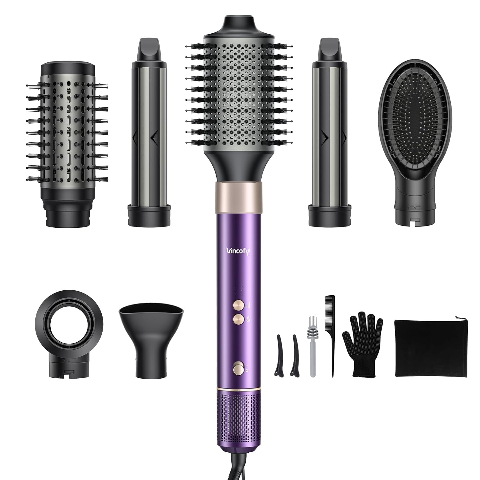 Juego de cepillo y peinado 7 en 1 para secador de pelo, secado rápido, rizado, alisado y voluminizador, herramienta de peinado de
