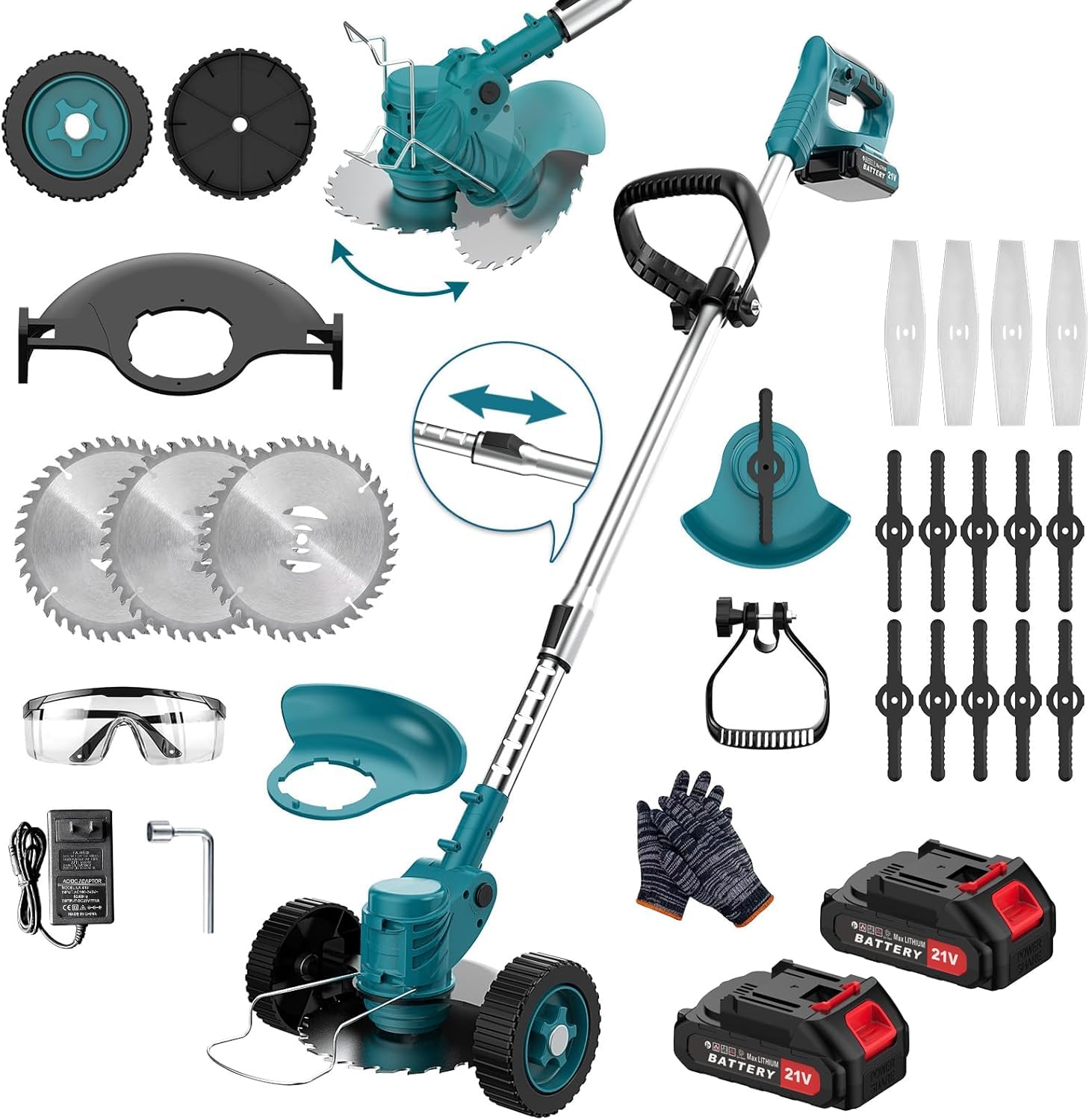 Wacker eléctrico de malezas con motor de alta potencia de 21 V, cuchillas 3 en 1 y poste telescópico ajustable, recortadora de cés