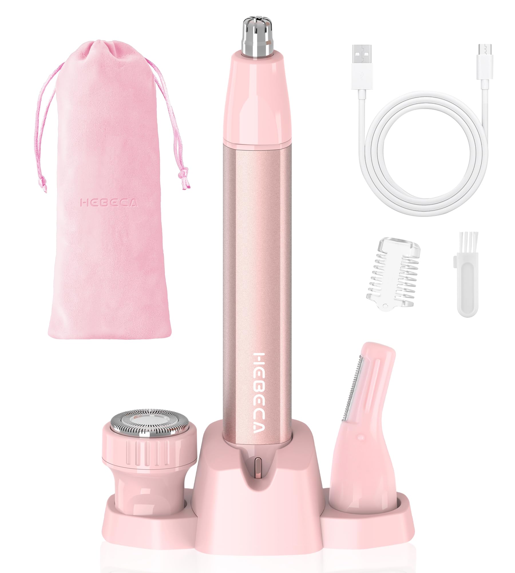 Recortadora de vello de nariz para mujer, 3 en 1, con base de almacenamiento, impermeable, portátil, recargable por USB, con bolsa