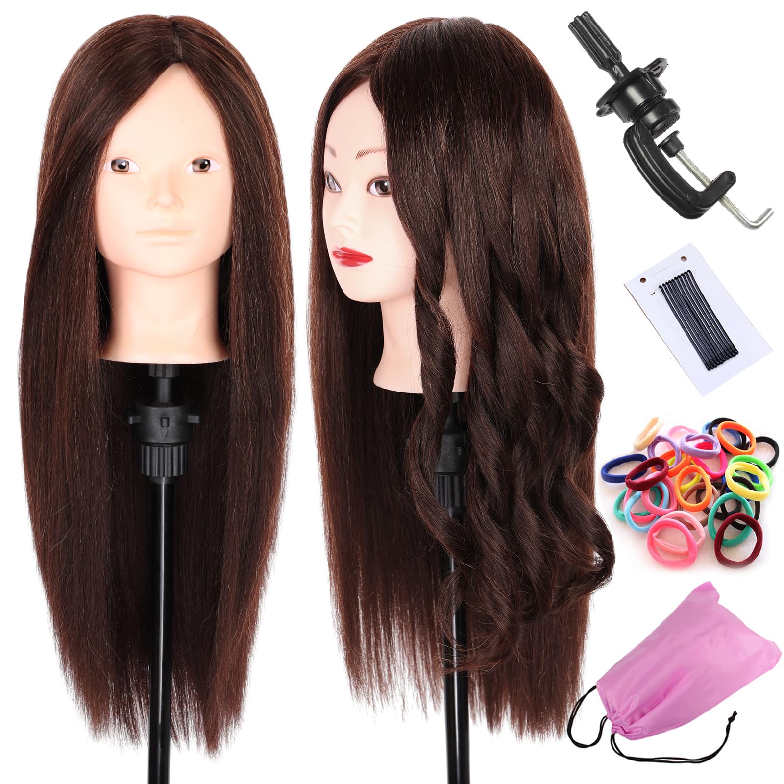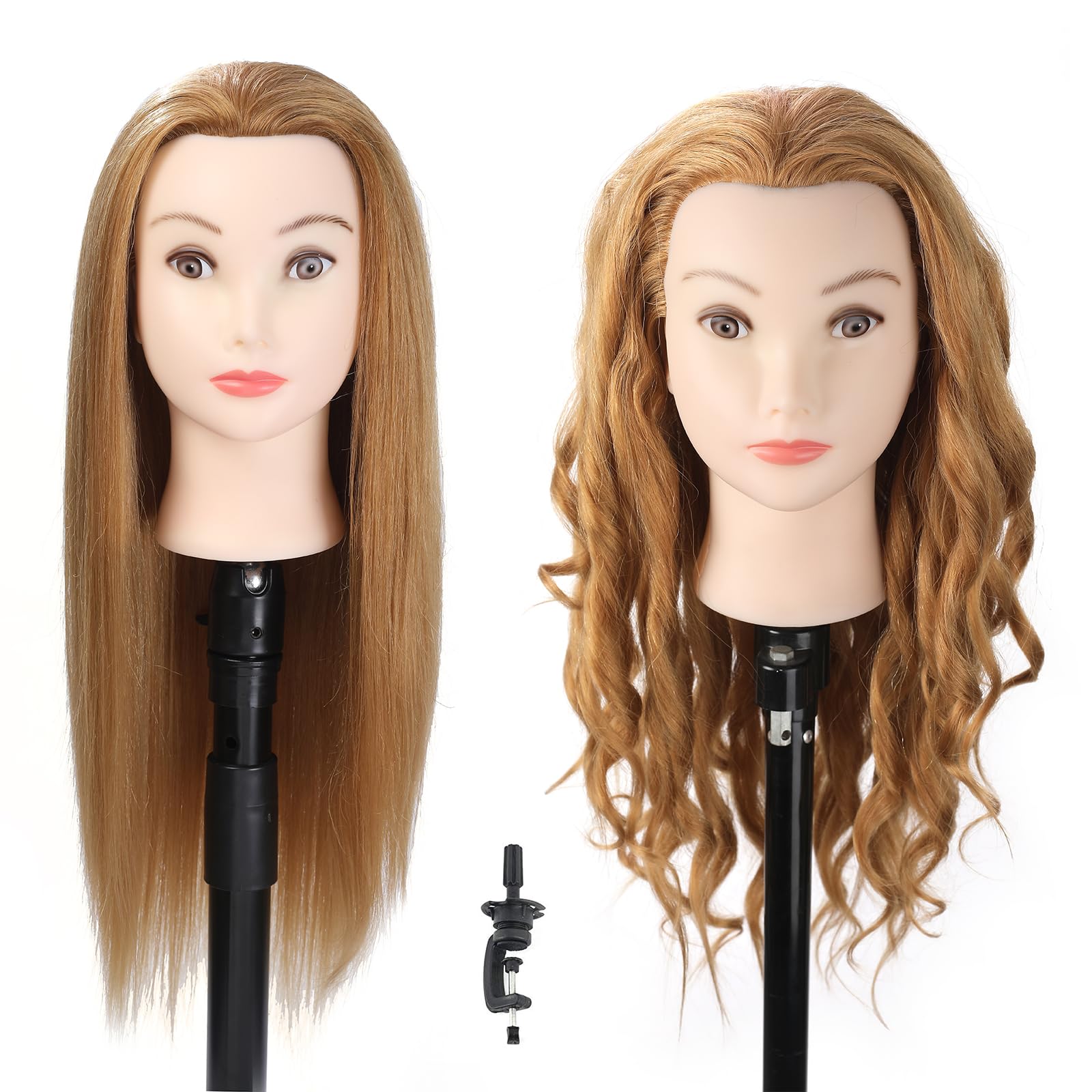 Cabeza de maniquí con pelo de 24 pulgadas para entrenamiento de peinado, cabeza de maniquí, práctica de maniquí, cosmetología, cab