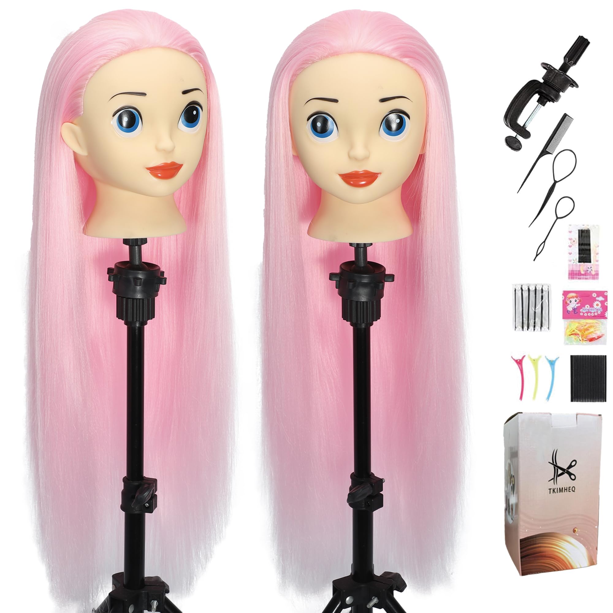 Headfix Cabeza de maniquí de pelo largo de 26 a 28 pulgadas, cabeza de maniquí de fibra sintética, para práctica de peluquero, cab