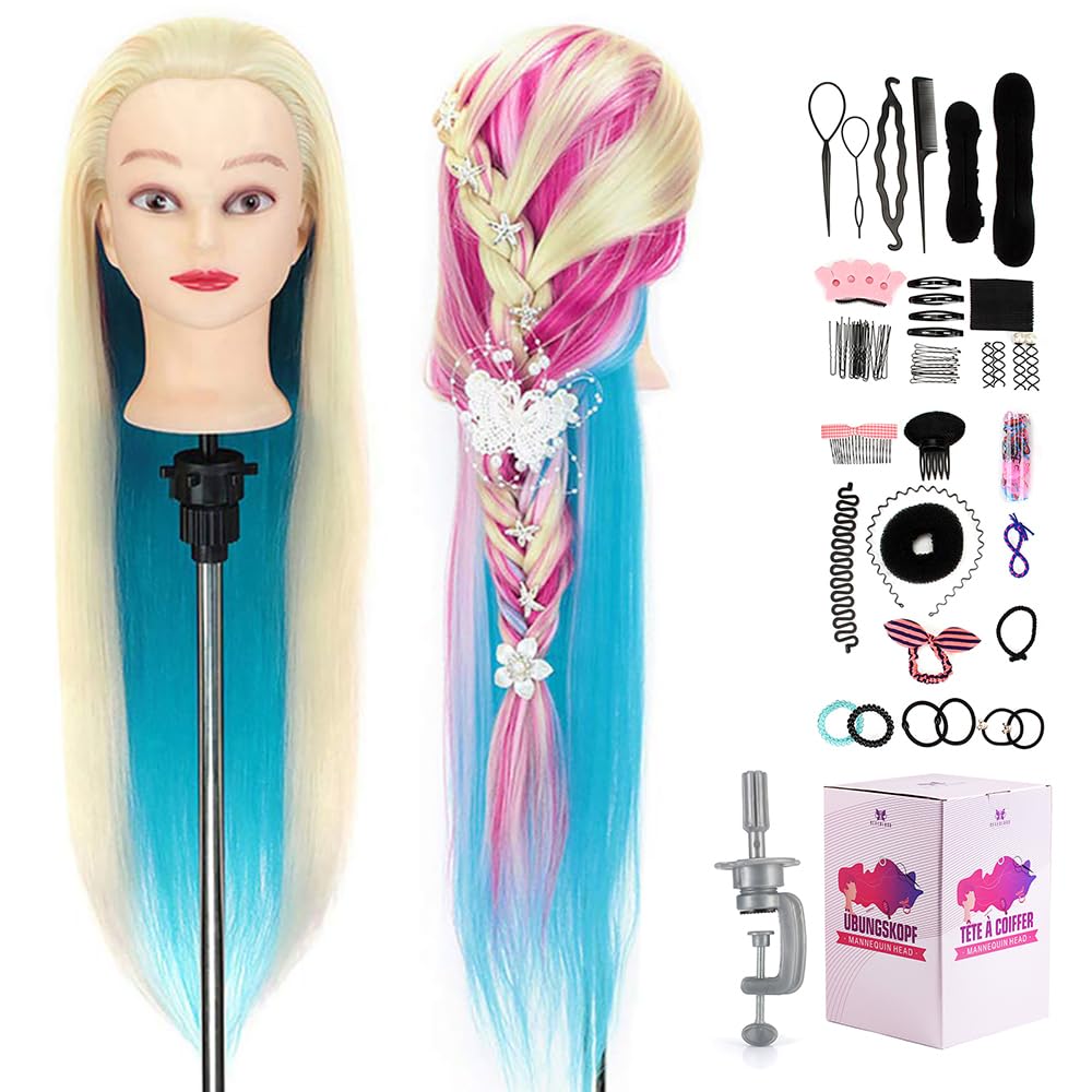 TopDirect – Cabeza de maniquí de pelo colorido de 29 pulgadas, cabeza de maniquí de cosmetología, cabeza de muñeca, práctica de pe