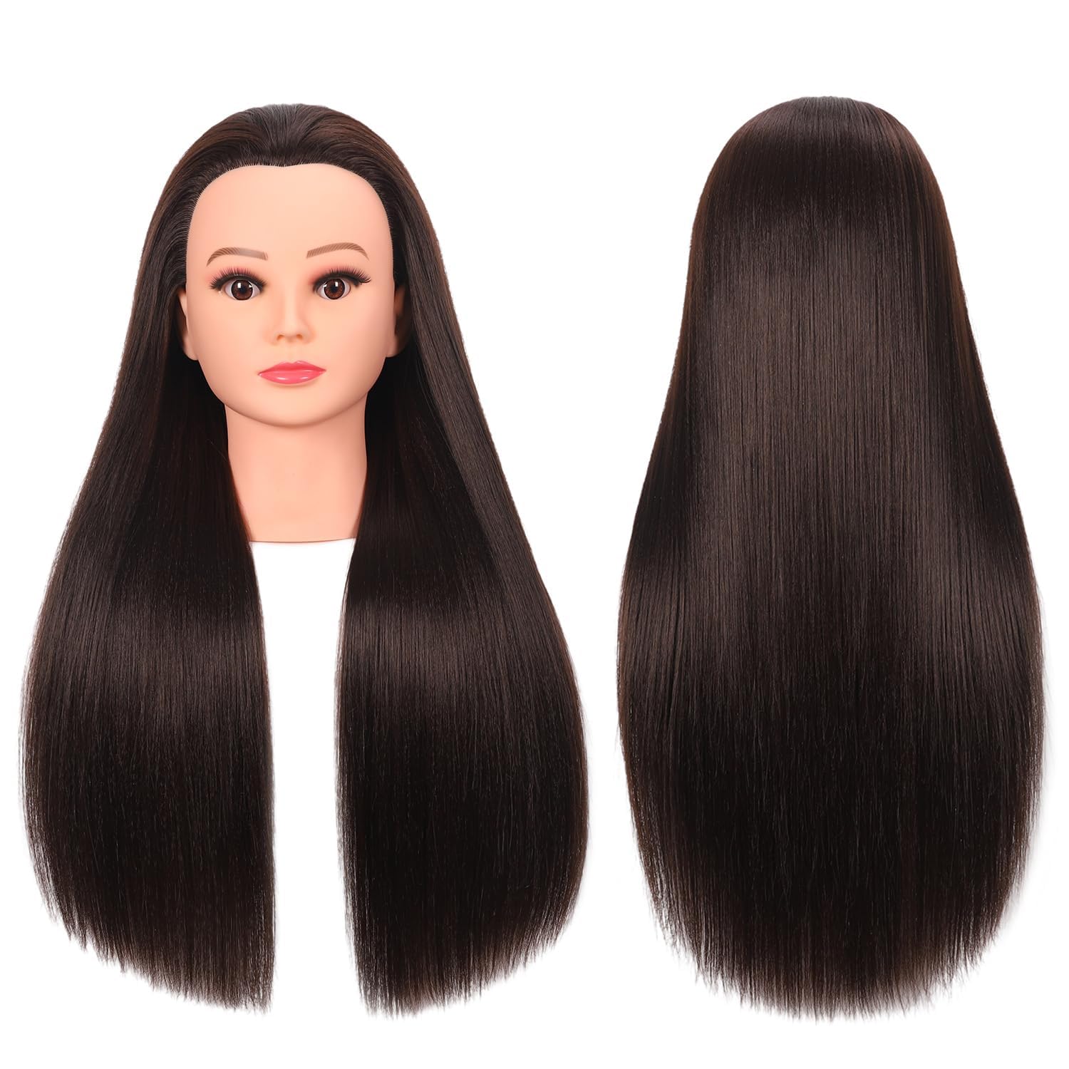Cabeza de maniquí con cabello de 26 a 28 pulgadas, maniquí de entrenamiento de peinado, cosmetología, cabeza de muñeca, mezcla de