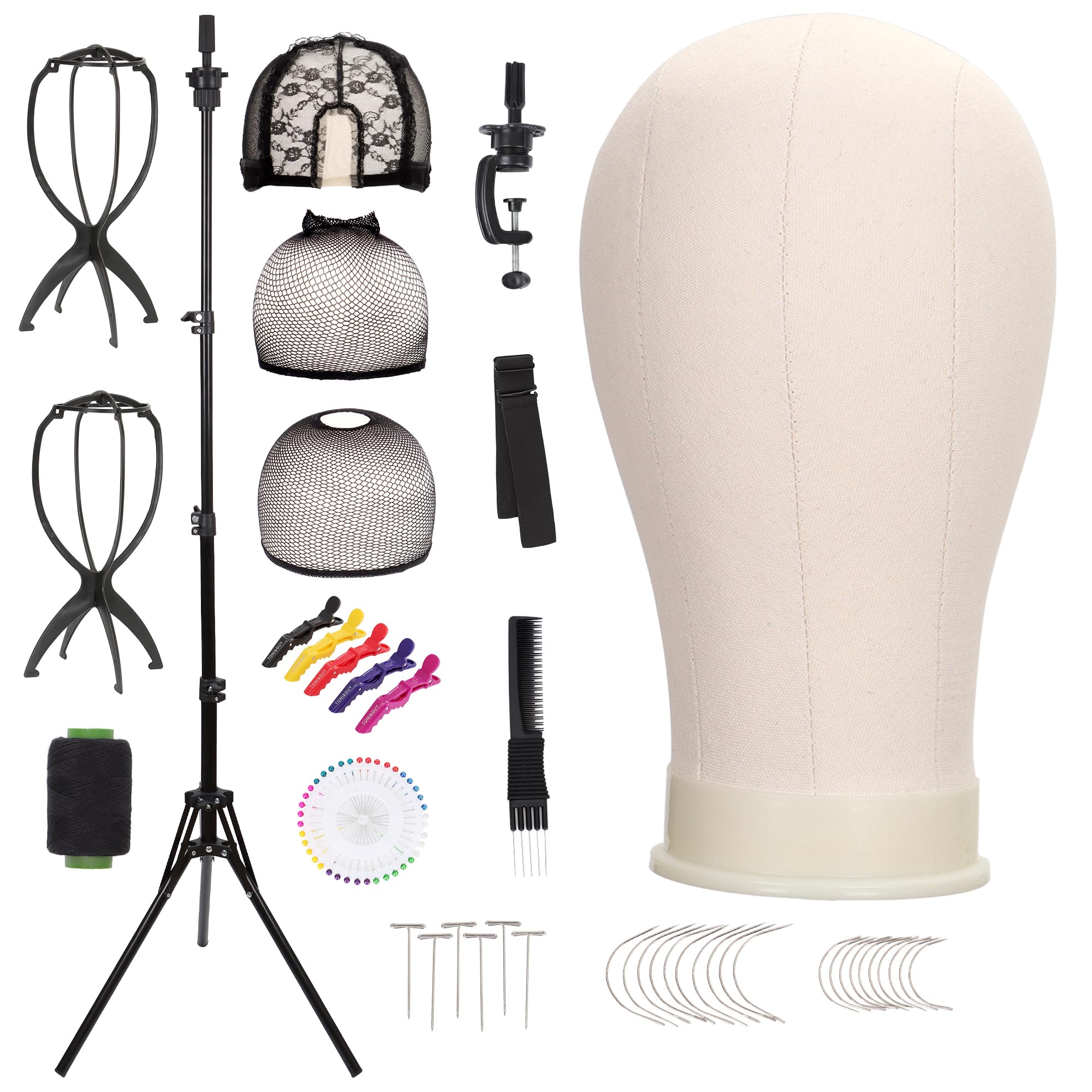 Wig Head 22Inch Canvas Block Head Wig Stand with Mannequin Head for Making Wigs Display Styling