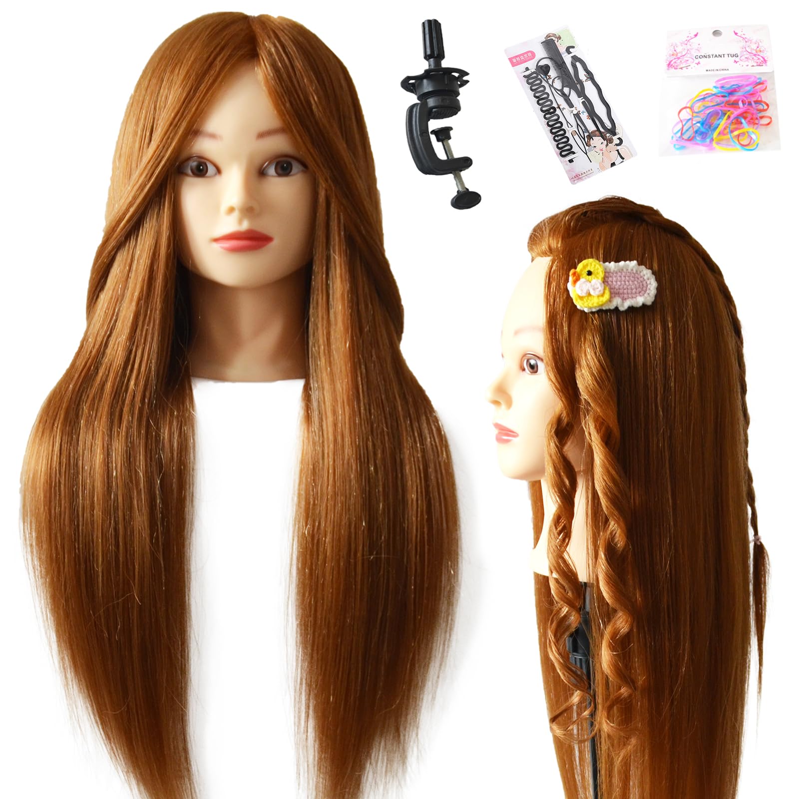 Stancia Cabeza de maniquí con cabello, 24-26 pulgadas, de fibra sintética, para peinado, cosmetología, modelo de entrenamiento con