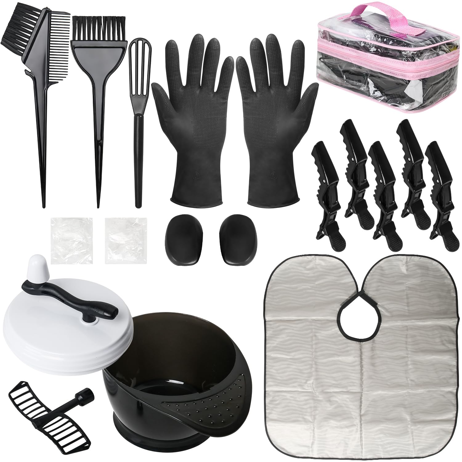ROOHUA Kit de coloración de tinte de cabello de 17 piezas, cuenco para teñir el cabello, agitador de cabello, cepillo de tinte, cu