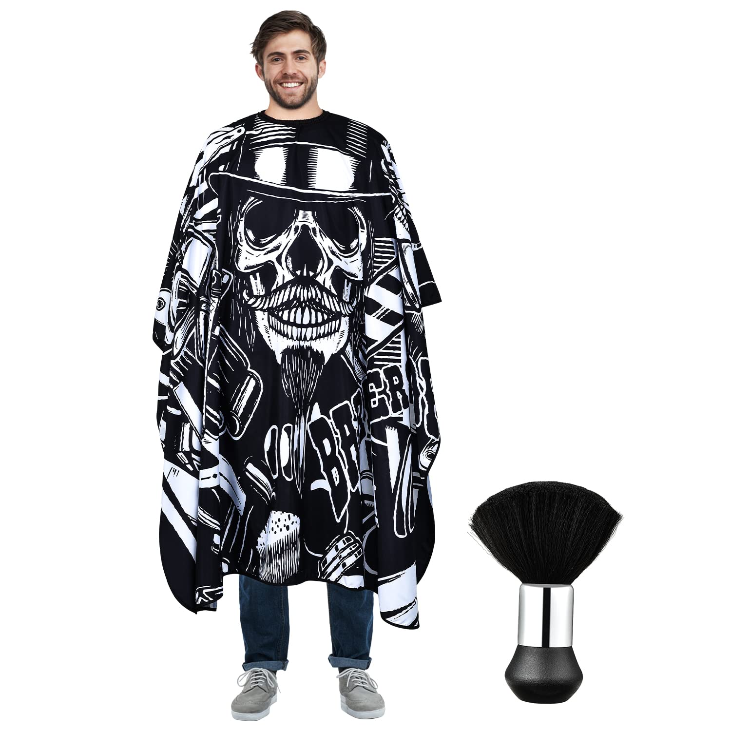 C250023B – Delantal de corte de pelo de poliéster profesional, 54 x 62 pulgadas, rayas blancas y negras, C250023B, Rayas negras y
