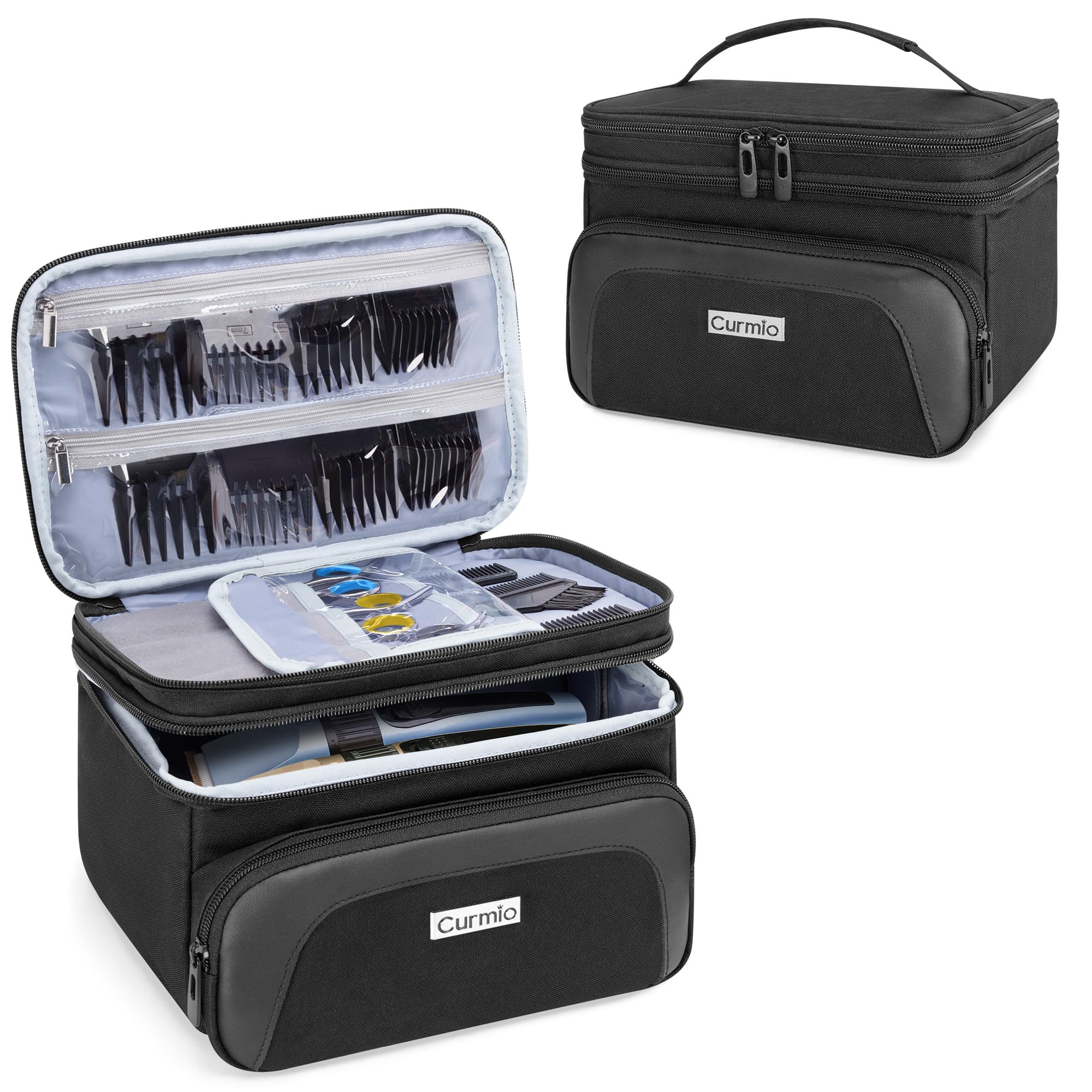 CURMIO Estuche de transporte de viaje para cortapelos, suministros de peluquería de doble capa, bolsa de almacenamiento compatible