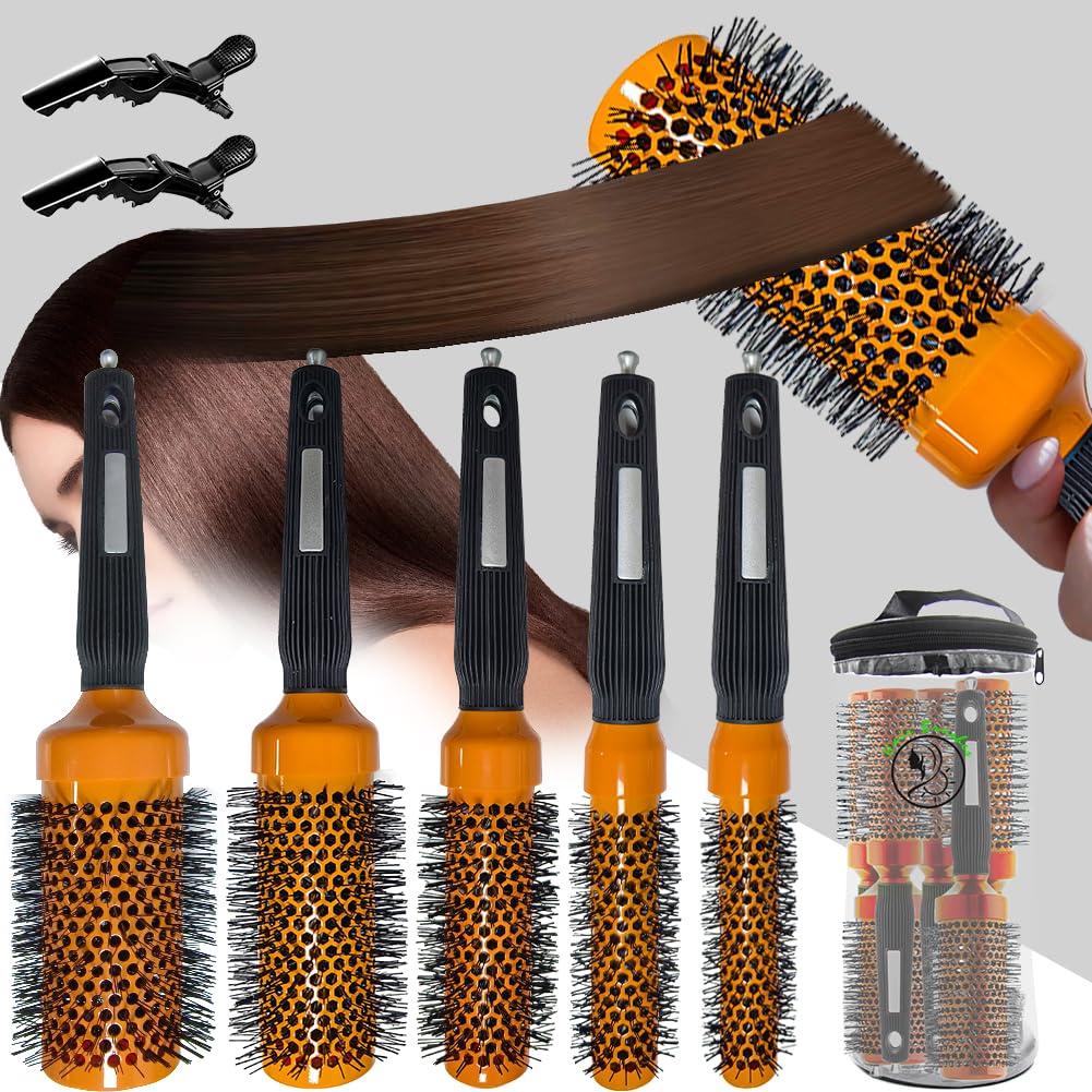 Juego de 5 cepillos de pelo redondo para secado con secado, cepillo profesional para cabello rizado, cepillo de hojas de cabello b