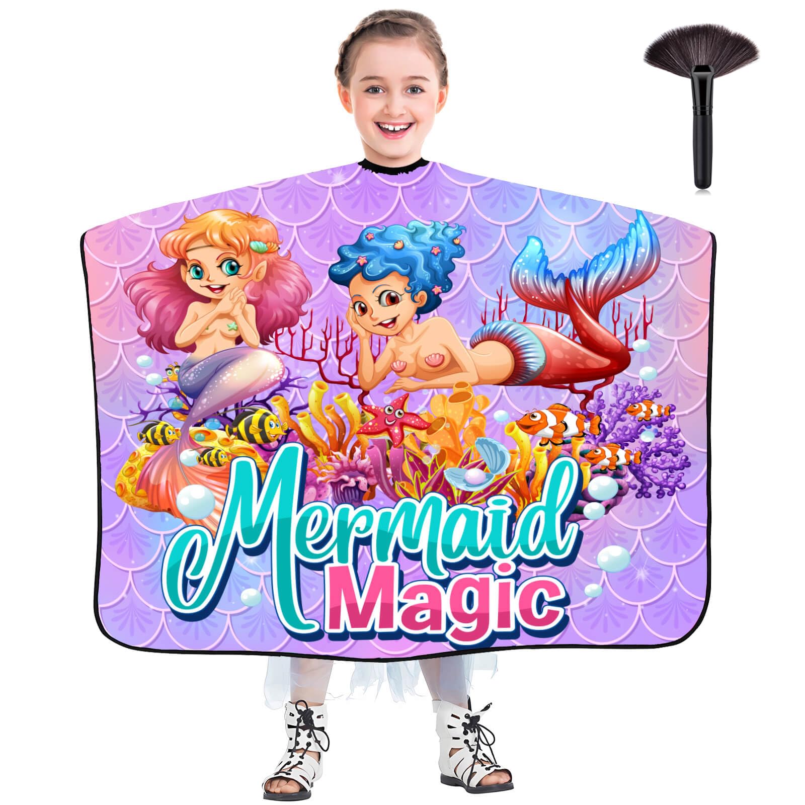 DOKKIA Capa de corte de pelo de peluquería para niños y niñas, vestido de tela para peluquería con cepillo para el cuello, cola de