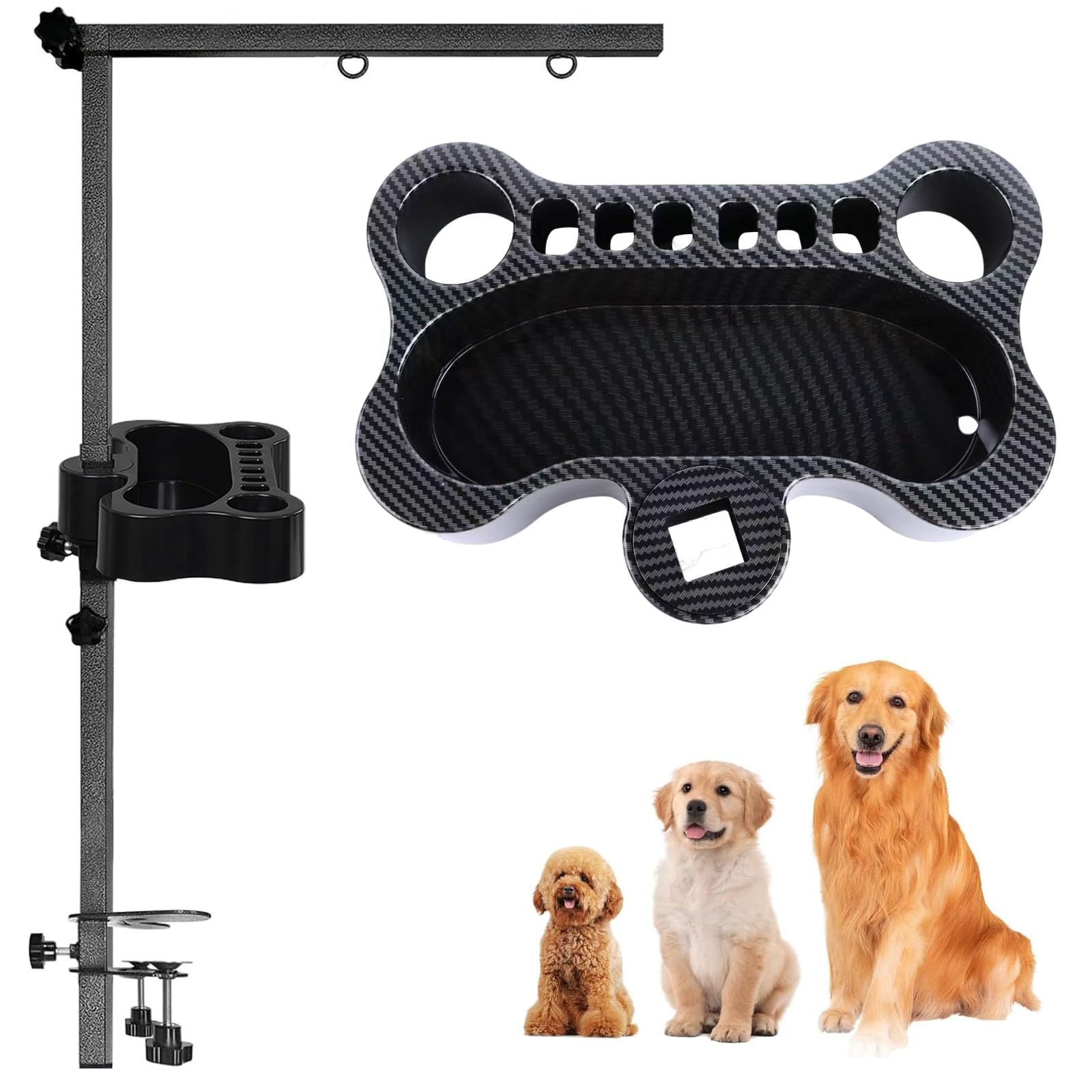 Soporte giratorio para herramientas de aseo de mascotas, organizador portátil de brazo de aseo para perros, para almacenamiento de