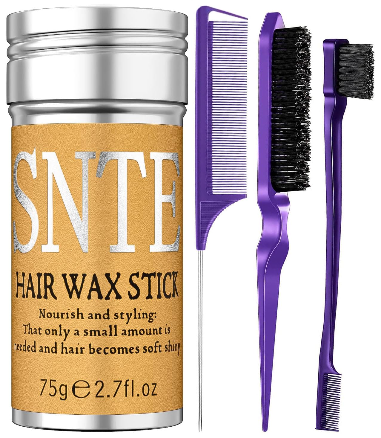 Cepillo para el cabello Slick Back (púrpura), juego de barra de cera para el cabello, domesticar para un estilo elegante de cola d