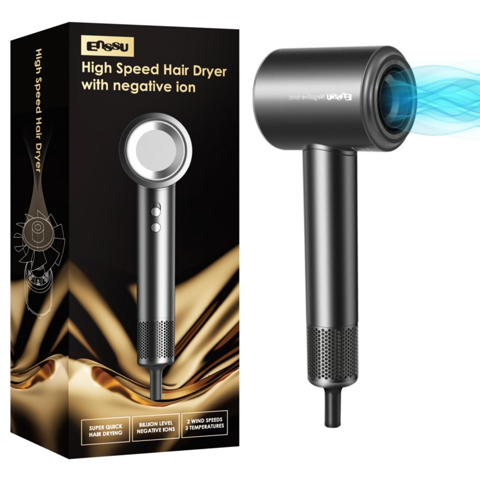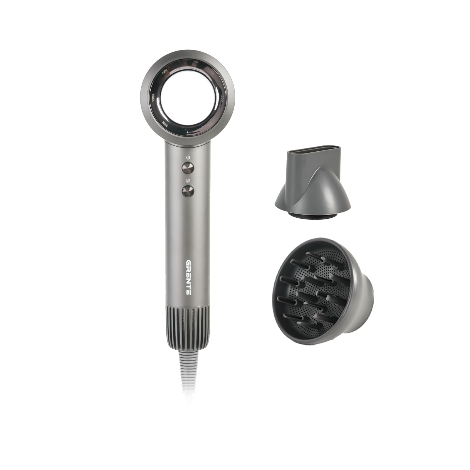 TORRAS Stream Secador de pelo, gris espacial, alta velocidad 96.1 ft/s, 1600W, modo de cuidado del cabello, cuidado iónico, 2 modo