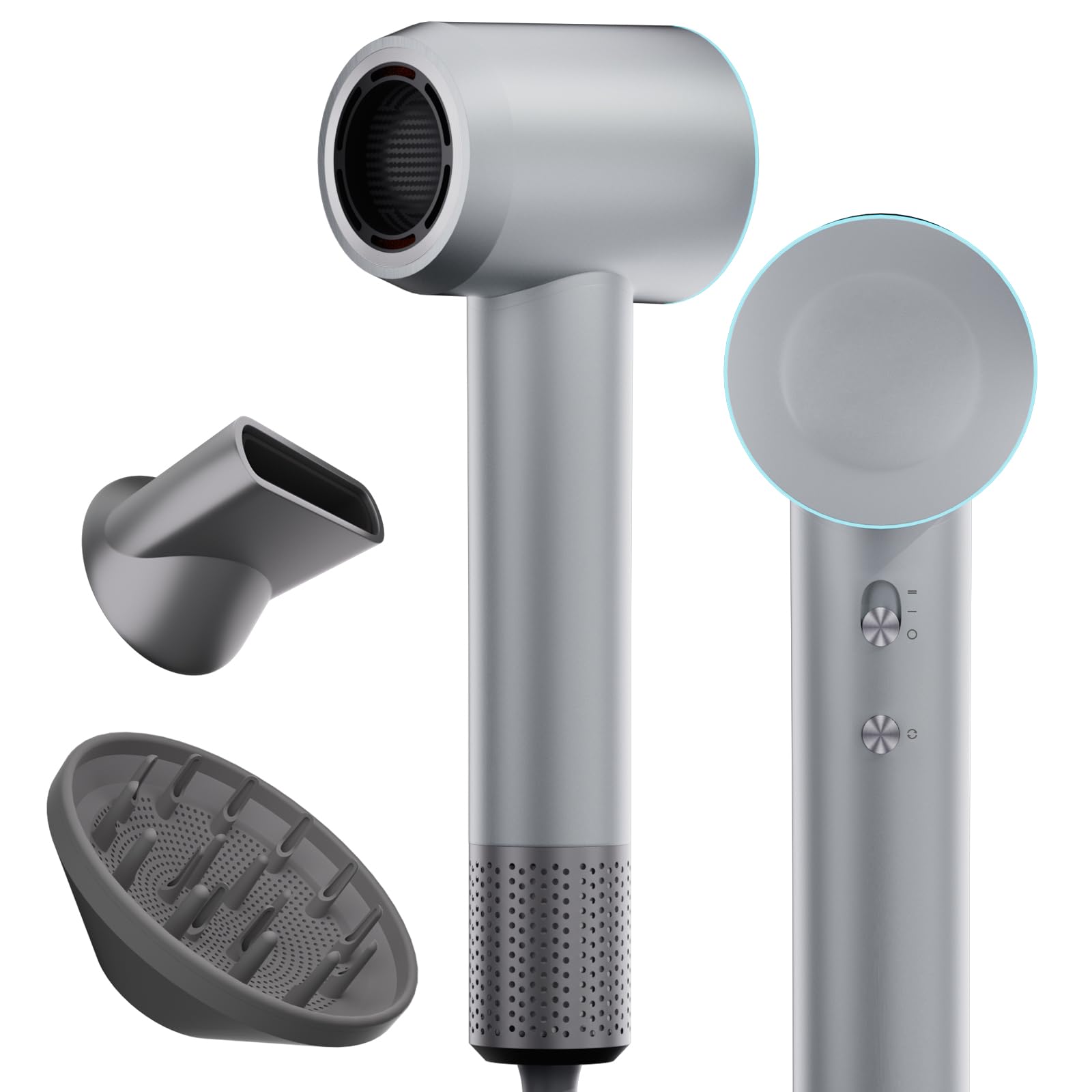 Secador de plasma, secador de pelo de secado rápido de 1400 W con boquilla magnética y difusor, 110,000 RPM de alta velocidad con