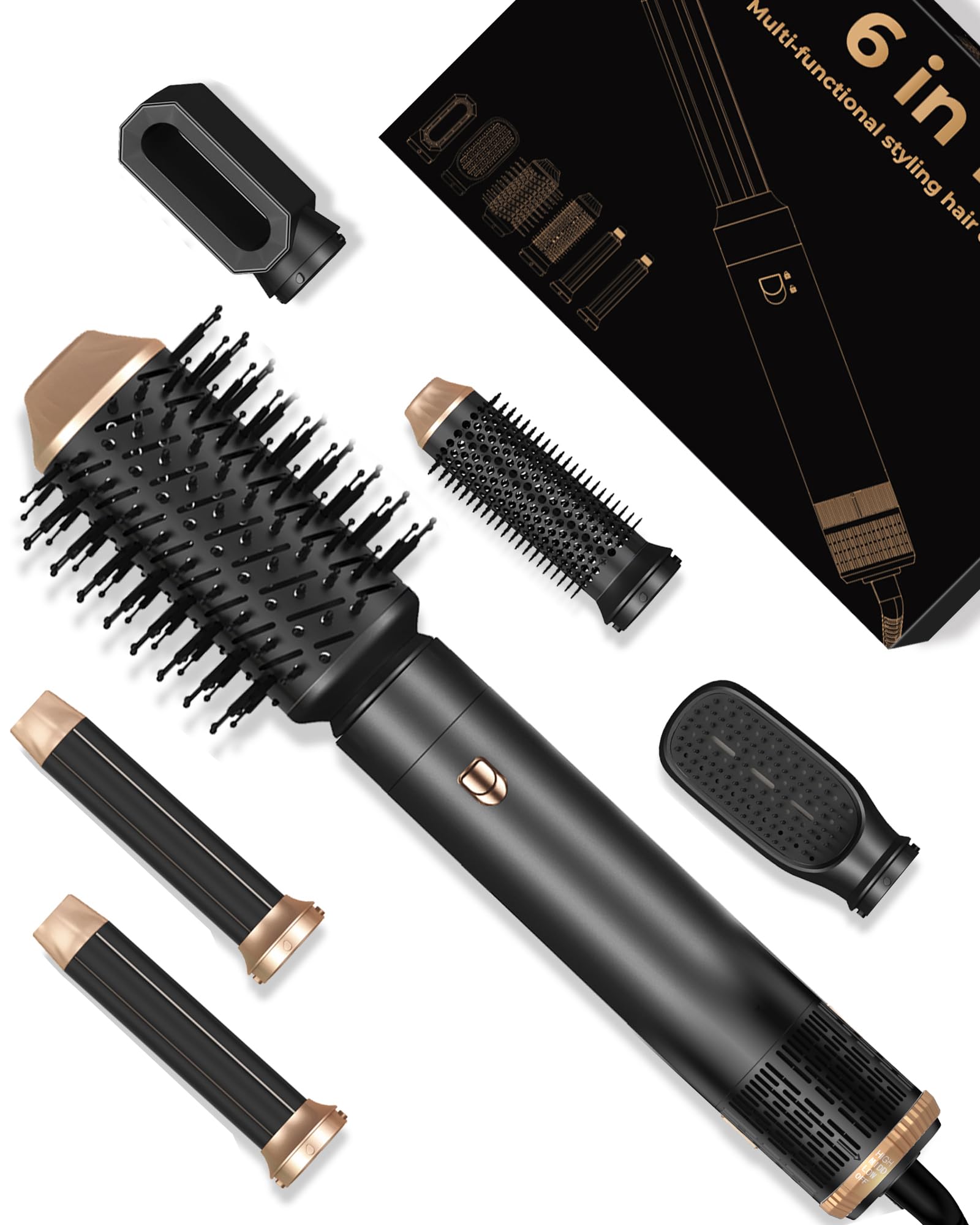 Cepillo secador de pelo, estilizador profesional de aire caliente 6 en 1, potente estilizador de envoltura de aire rizado, secador