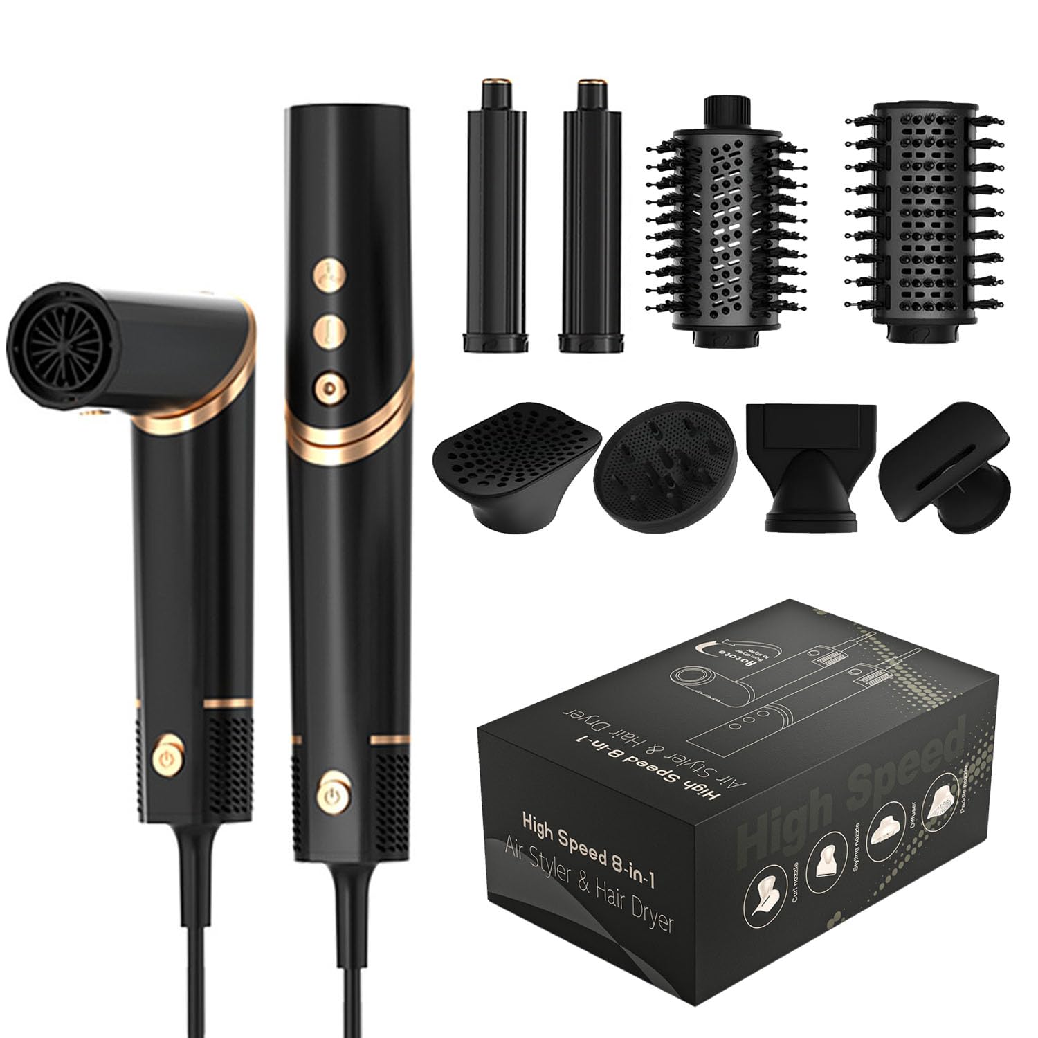 Cepillo secador de pelo 8 en 1 y secador de pelo, peinado de pelo caliente con iones negativos de alta velocidad de 110,000 RPM, r