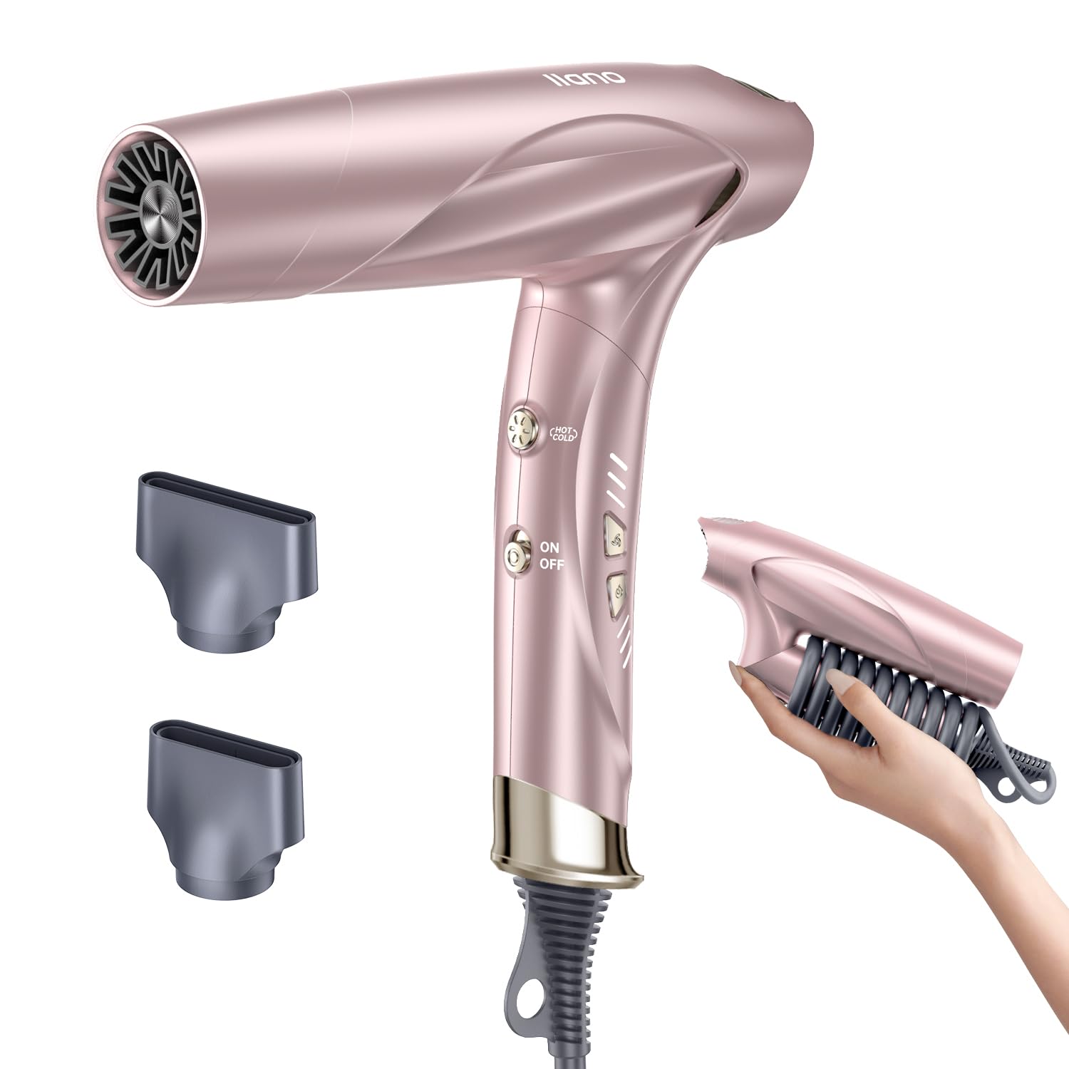 Llano Secador de pelo iónico de alta velocidad con motor sin escobillas de 1500 W, secado rápido, secado rápido, profesional con 2