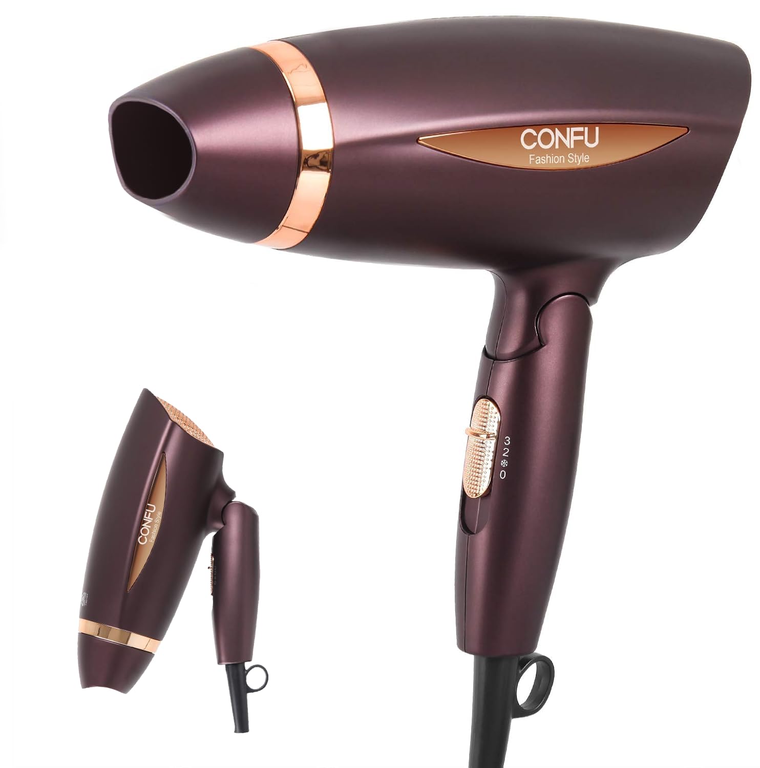 CONFU Secador de pelo de viaje pequeño portátil de 1600 W con mango plegable, secador de pelo ligero para mujeres, secador de pelo