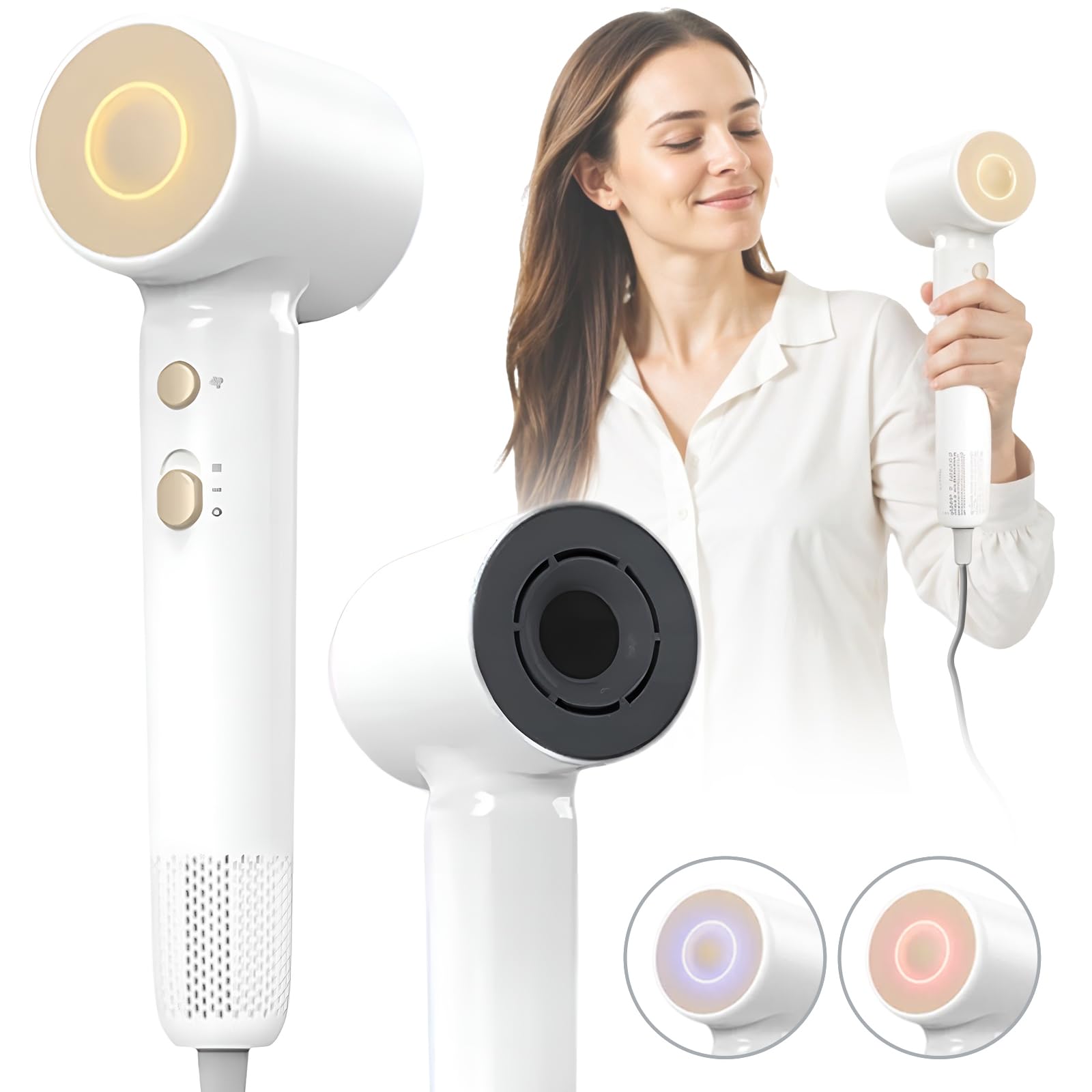 Secador de pelo de bajo ruido, secador iónico de alta velocidad de 1,640.4 ft con motor sin escobillas de 150, 000 RPM para secado