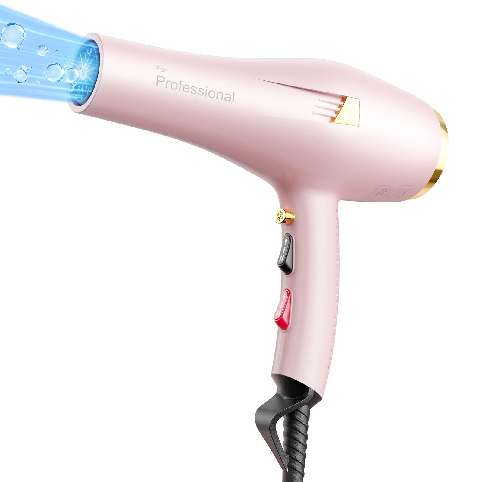 Secador de pelo profesional iónico, difusor y concentrador, 2 velocidades, 3 ajustes de calor, secador de pelo, color rosa