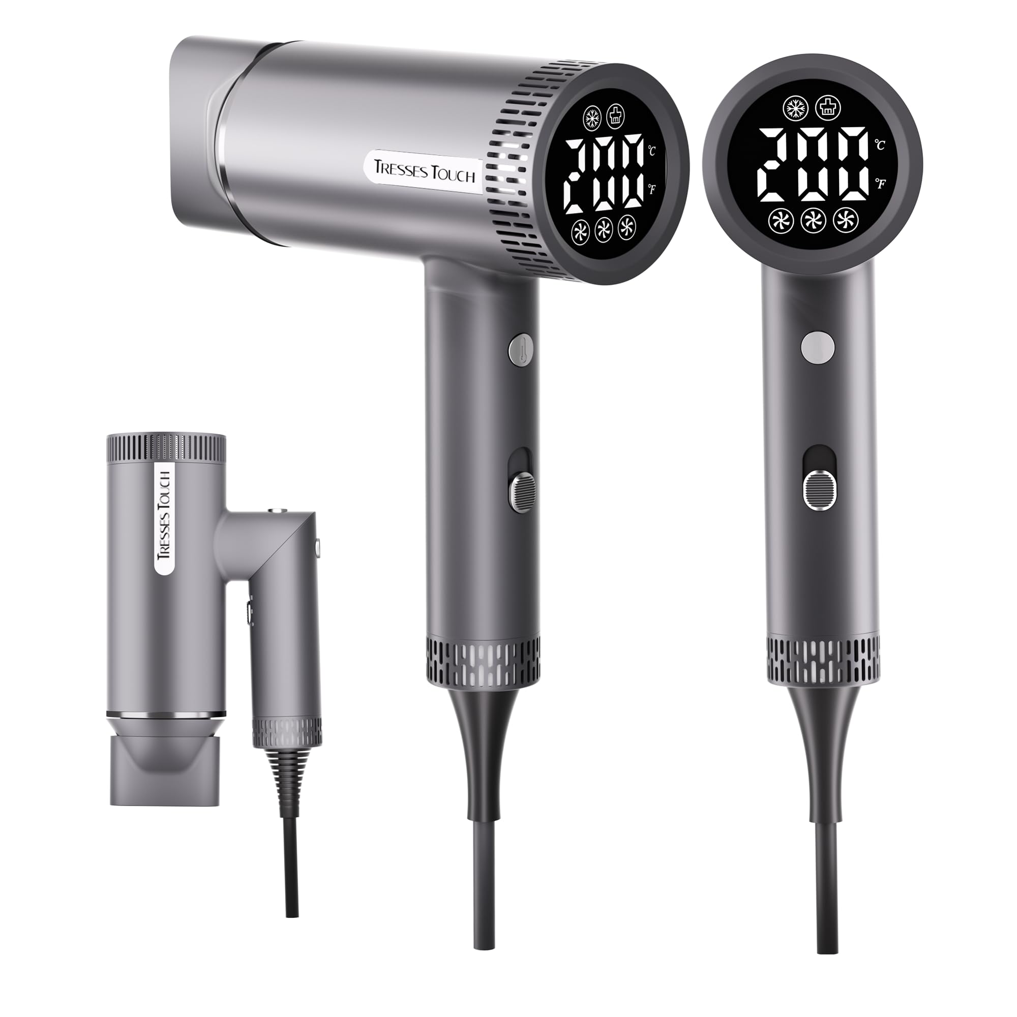 Secador de pelo profesional, secador de pelo iónico de 1600 W con pantalla LED y boquilla magnética, secador de pelo portátil con