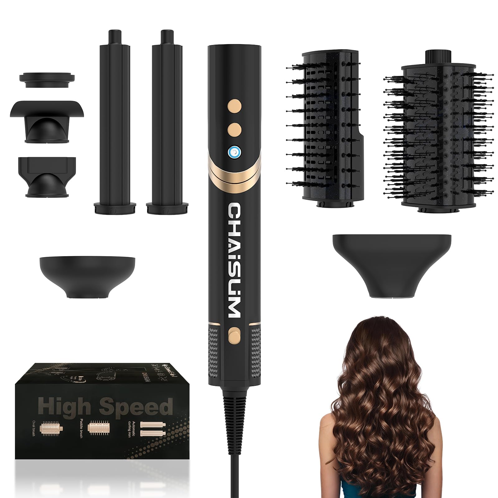 Cepillo de aire caliente 8 en 1 y secador de pelo, secador de pelo de alta velocidad de 110000 RPM con lons negativos para un esti
