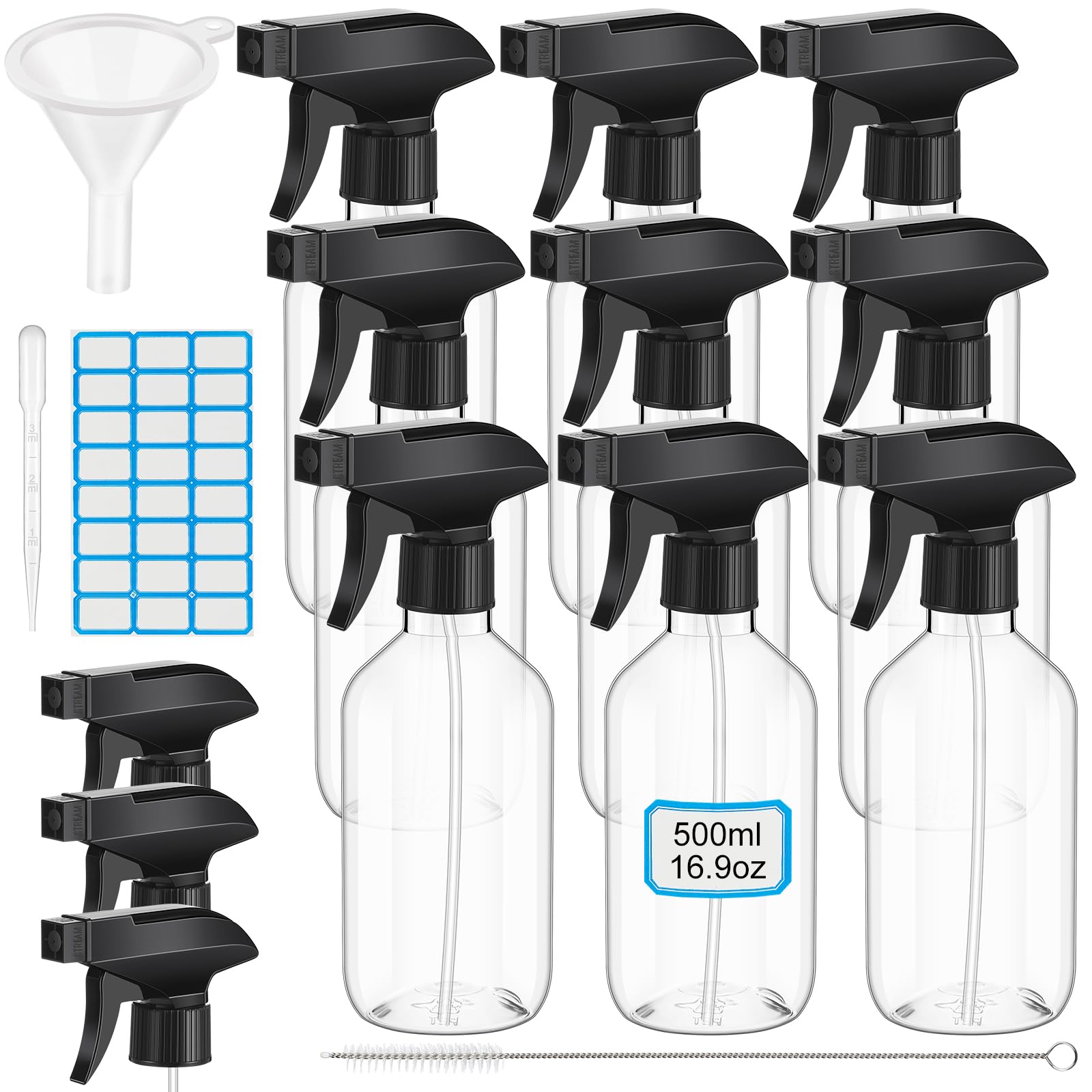 Botellas pulverizadoras de plástico vacías de 16.9 onzas líquidas, paquete de 2 botellas de pulverización resistentes, botella de