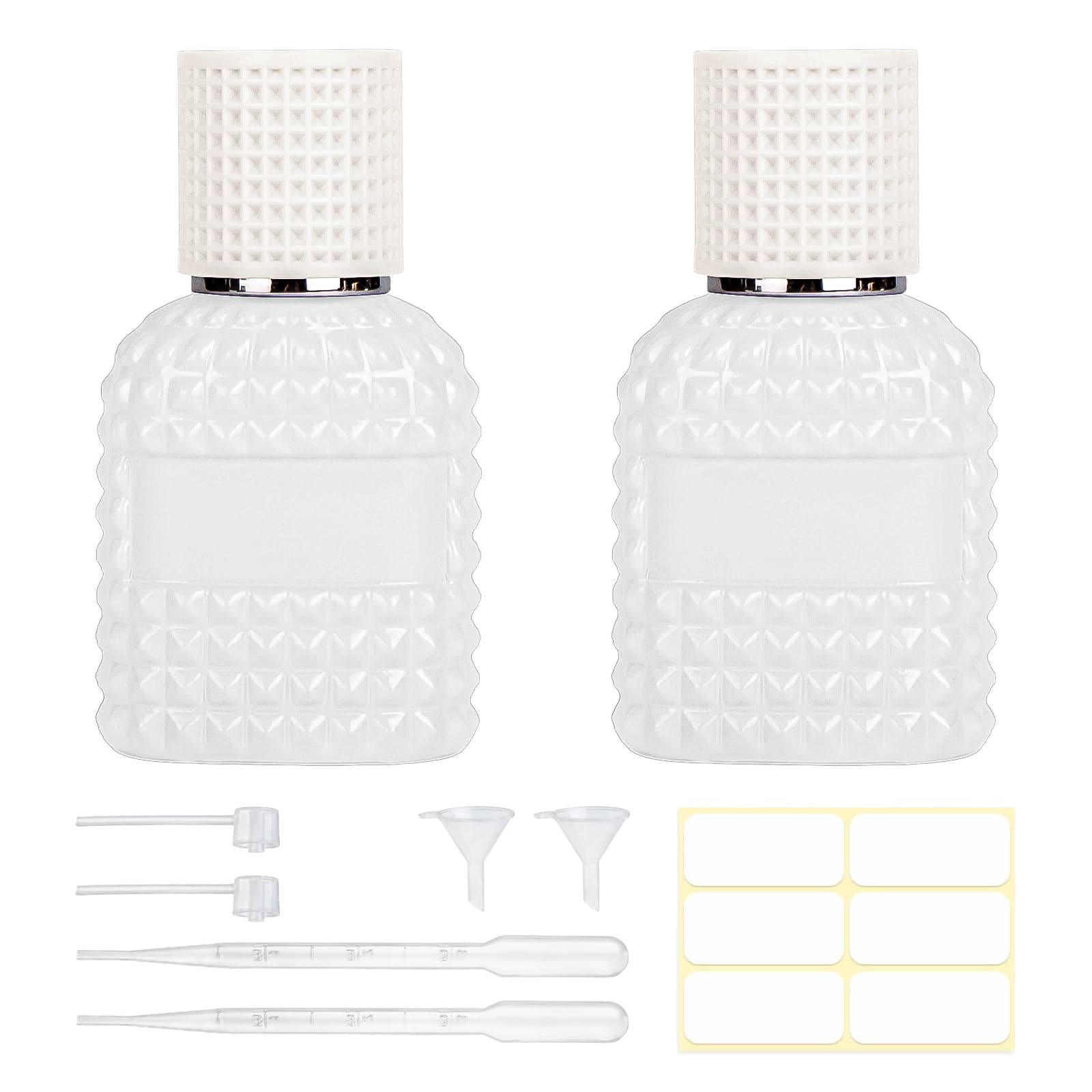 Paquete de 2 botellas de perfume vacías de 1.0 fl oz (1.06 fl oz / 1.6 fl oz), atomizador de niebla fina recargable, atomizadores