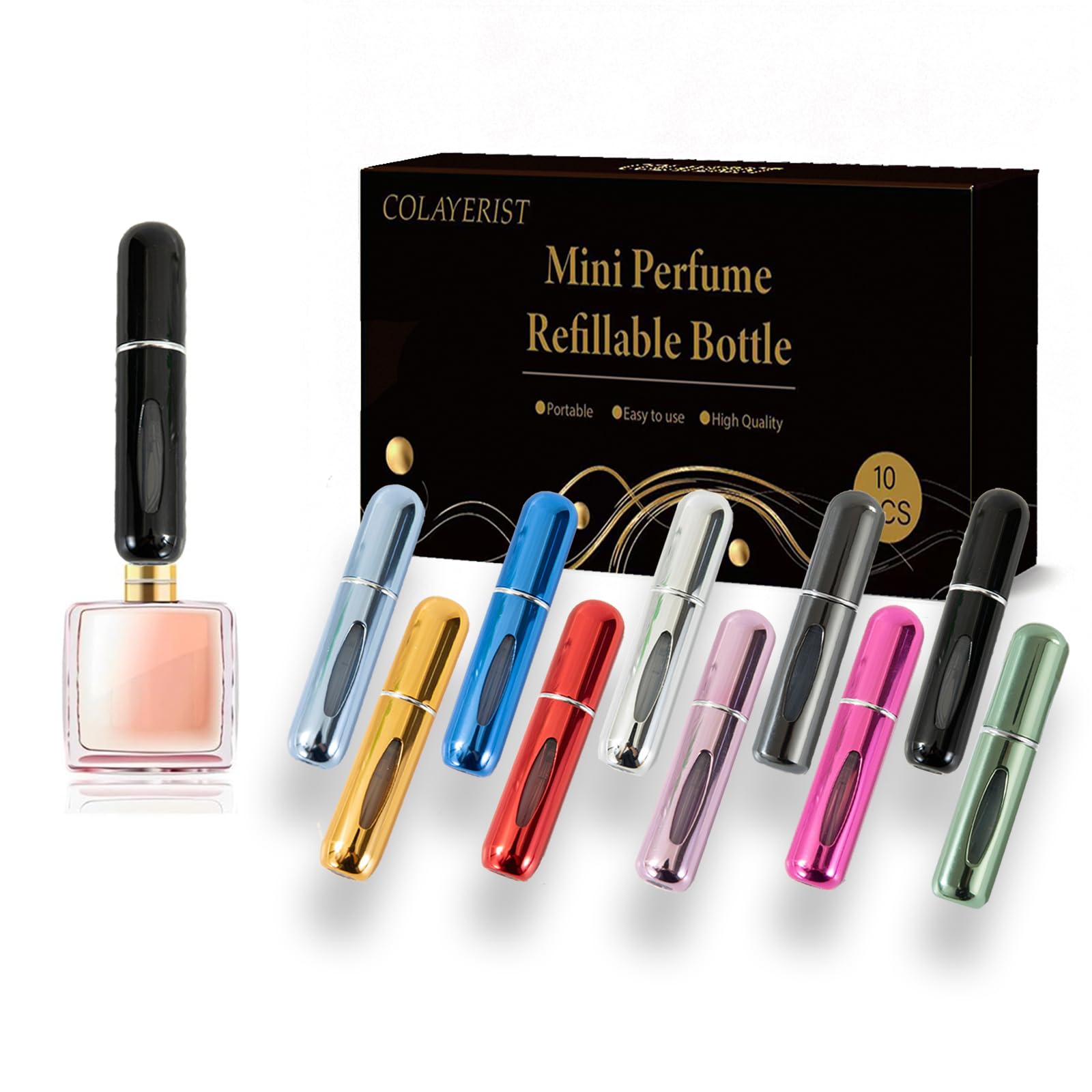 5 atomizadores de colonia vacíos, 0.3 fl oz, mini botellas de perfume recargables con herramientas dispensadoras, botella rociador