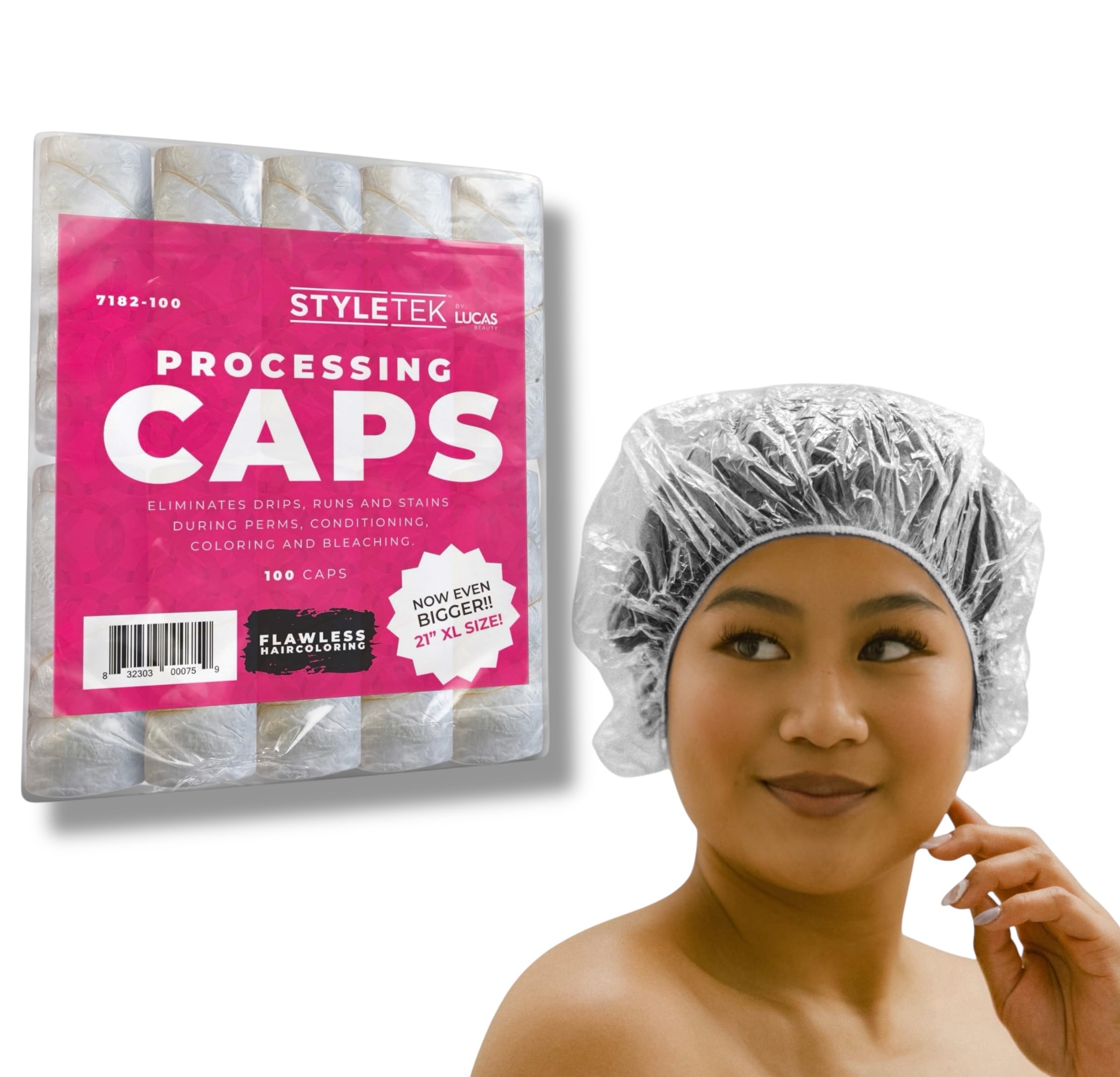 STYLETEK® 100 gorras desechables transparentes para el cabello de la ducha, tamaño XL de 21 pulgadas, capas gruesas impermeables a
