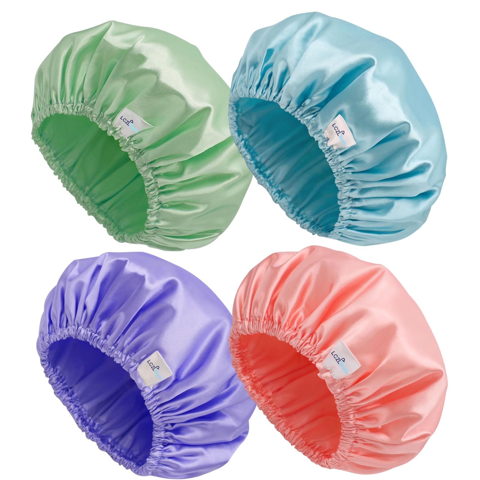 Juego de gorras de ducha reutilizables e impermeables extra grandes para mujer, doble capa de pelo largo, gorro de baño elástico p