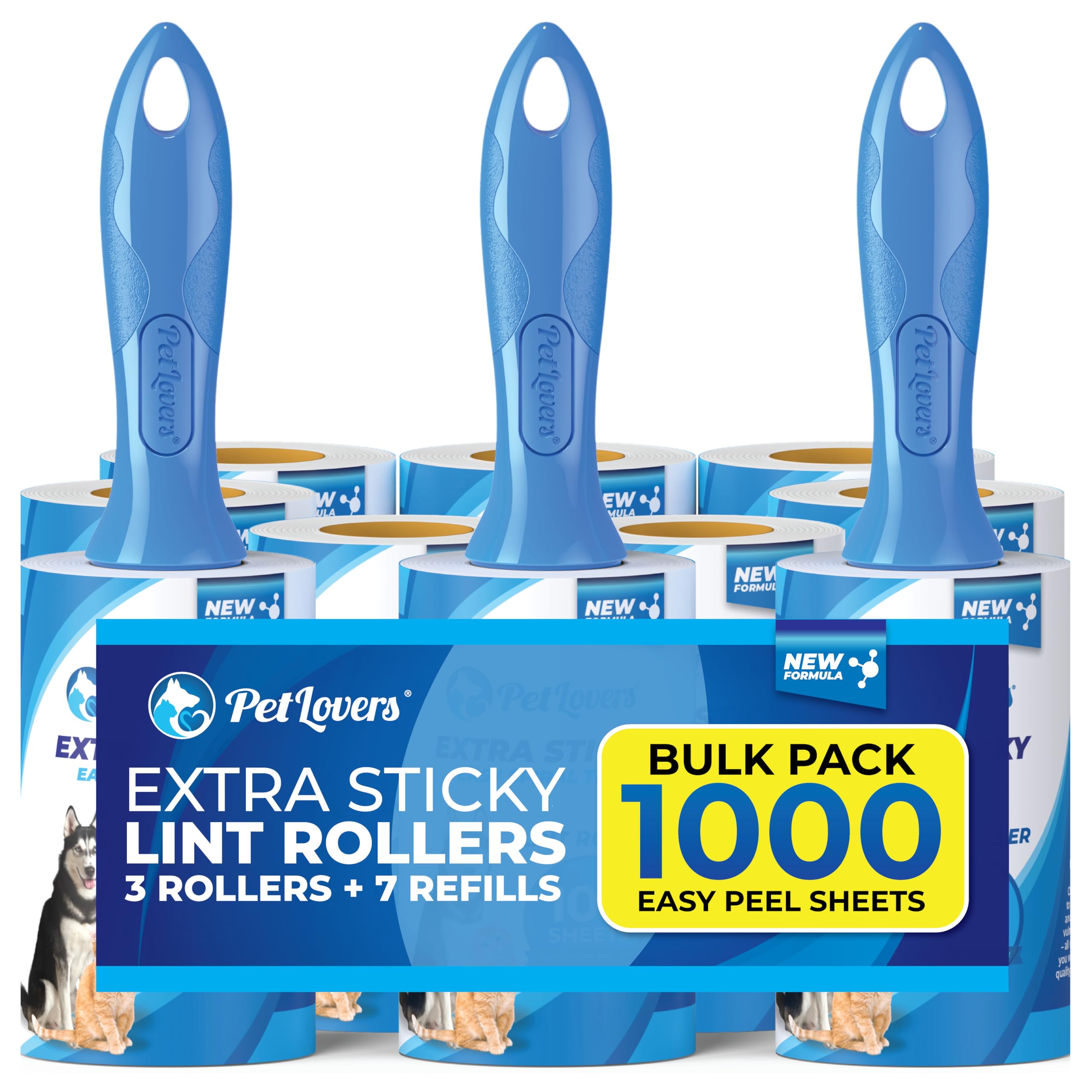 PetLovers Juego de rodillos extra pegajosos para pelusas a granel, 1000 hojas, 3 rodillos, 7 recambios para eliminación de pelusas