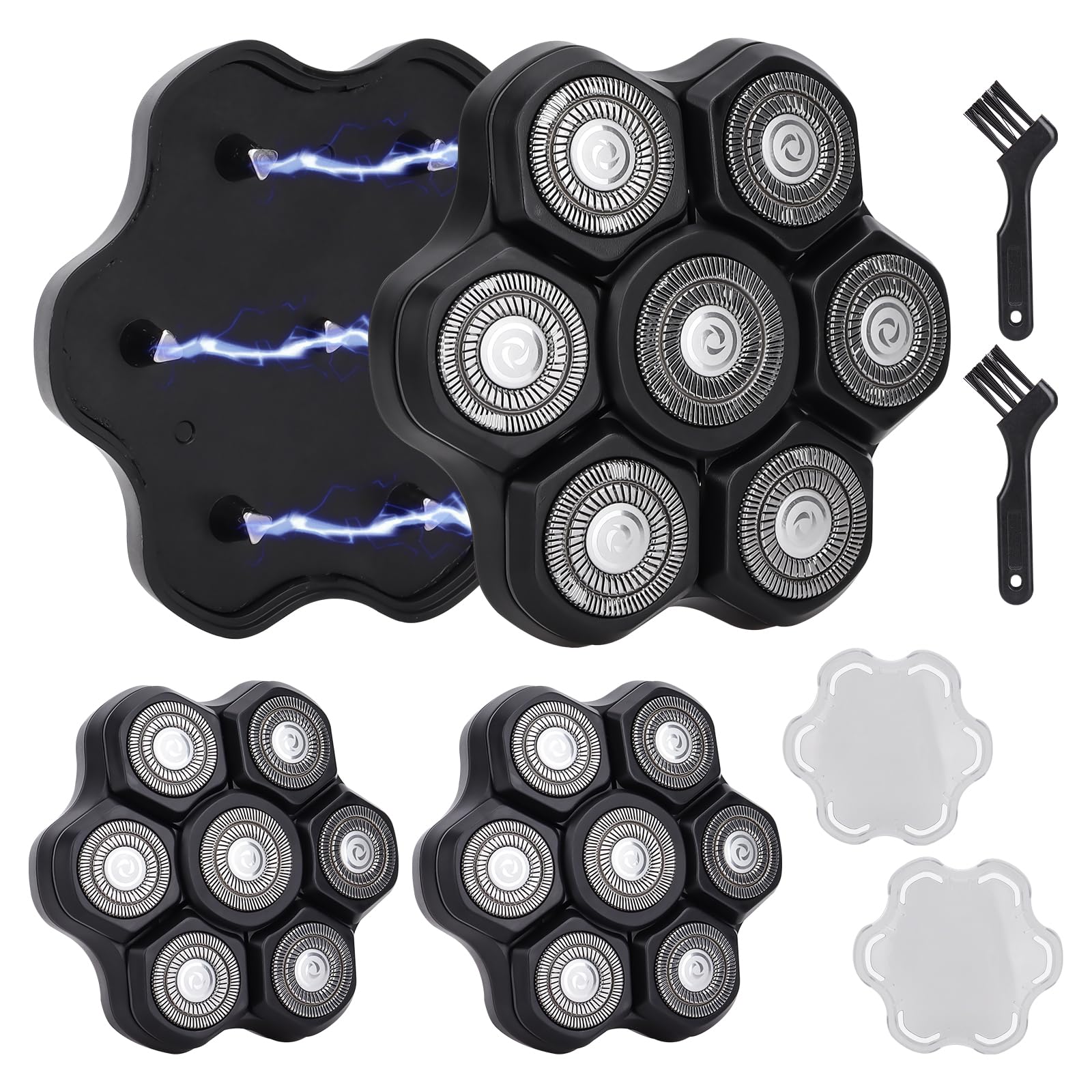 WAHFOX 7D Universal 7 cabezas para afeitadora de cabeza y otras cuchillas de repuesto para afeitadora de cabeza, 7 cabezas cortado