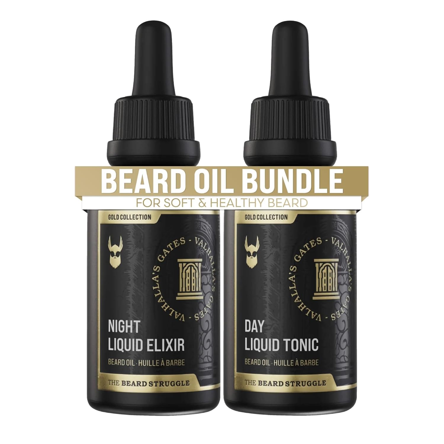 The Beard Struggle Paquete de aceite para barba Tonic + Elixir – Colección Gold – Aceite de aseo para barba – Suaviza, hidrata y f
