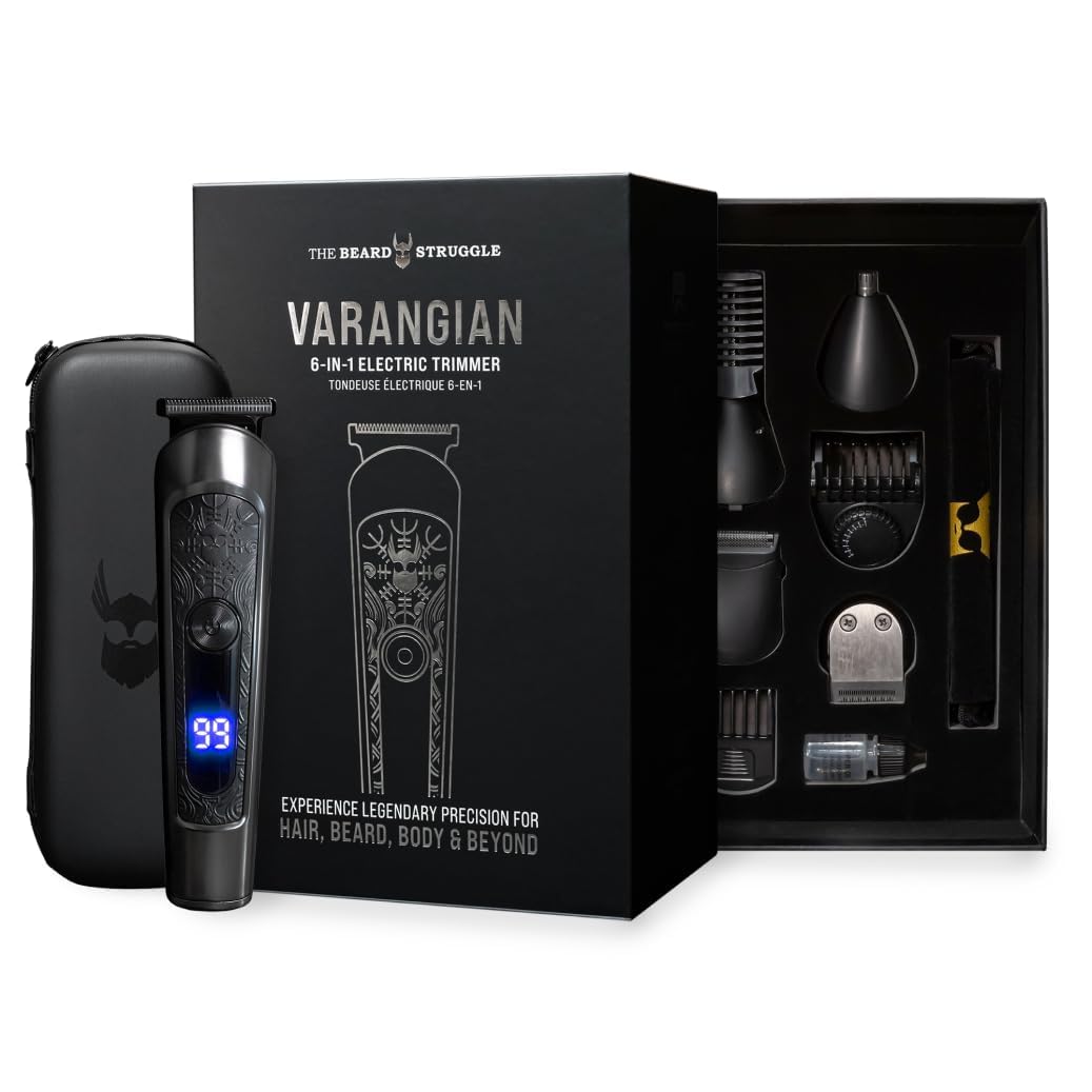 The Beard Struggle Varangian Beard Trimmer® 6 en 1 para cabello, barba, cuerpo y más allá, hoja de titanio, hoja ajustable de 17 l