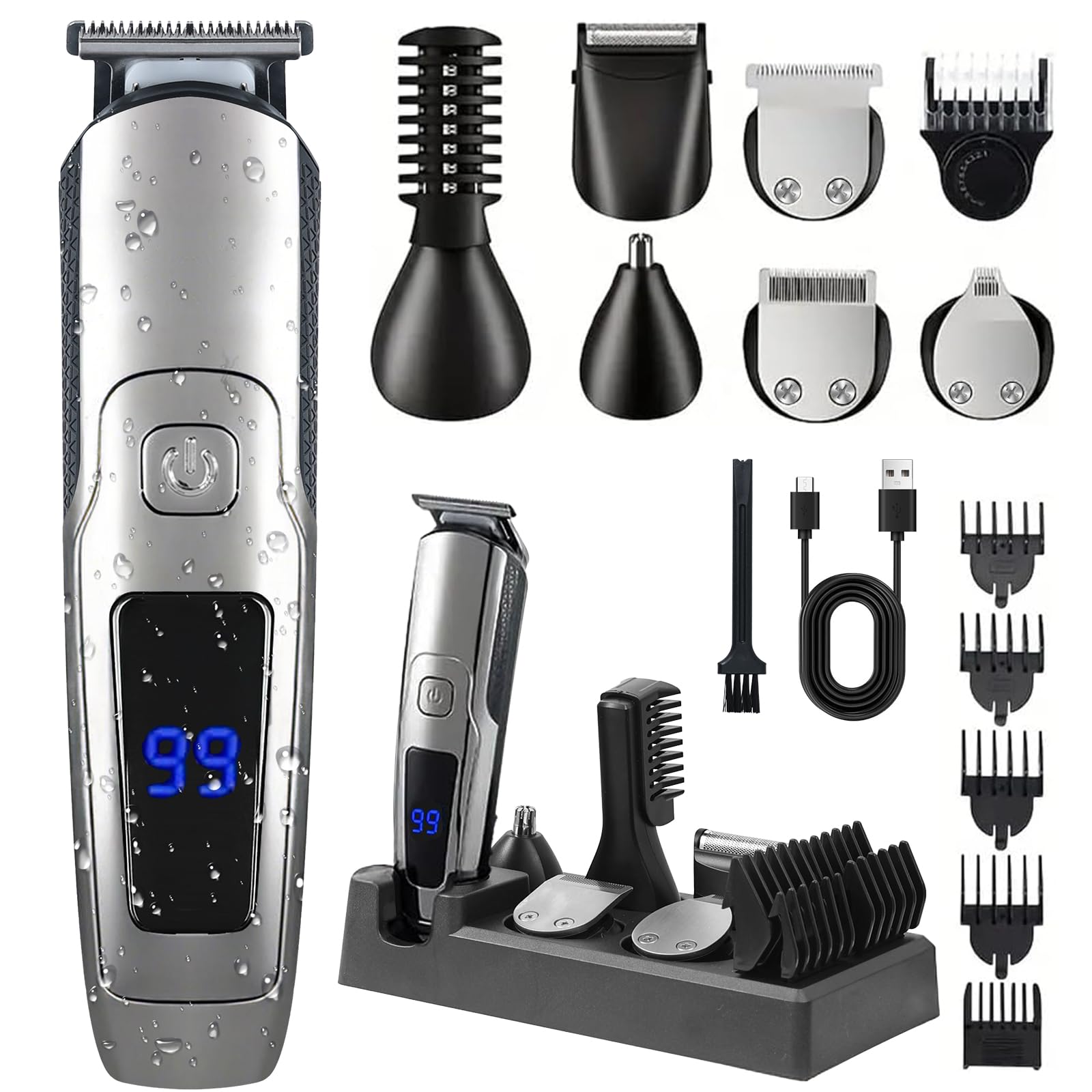 Kit de recortadora profesional para cortar el cabello, sin huecos, afeitadora eléctrica con hoja en T, afeitadora de nariz y cuerp